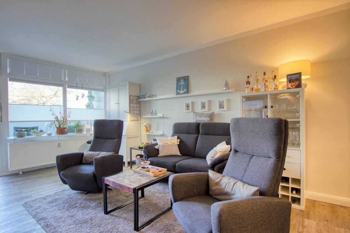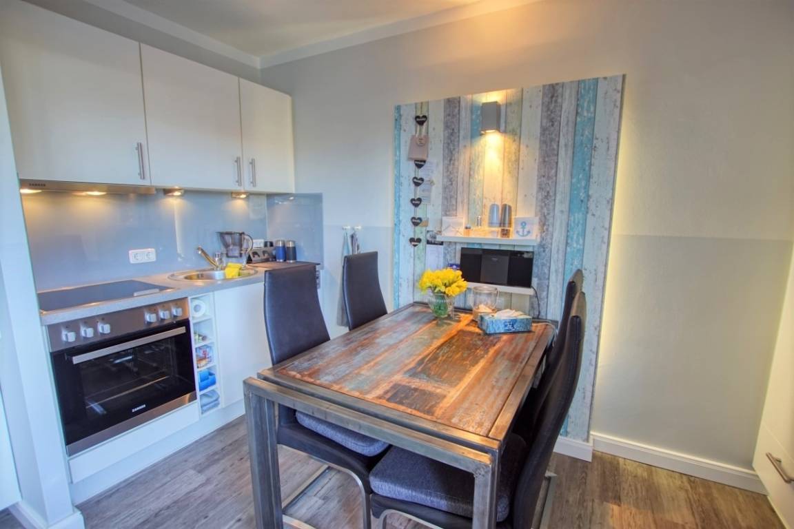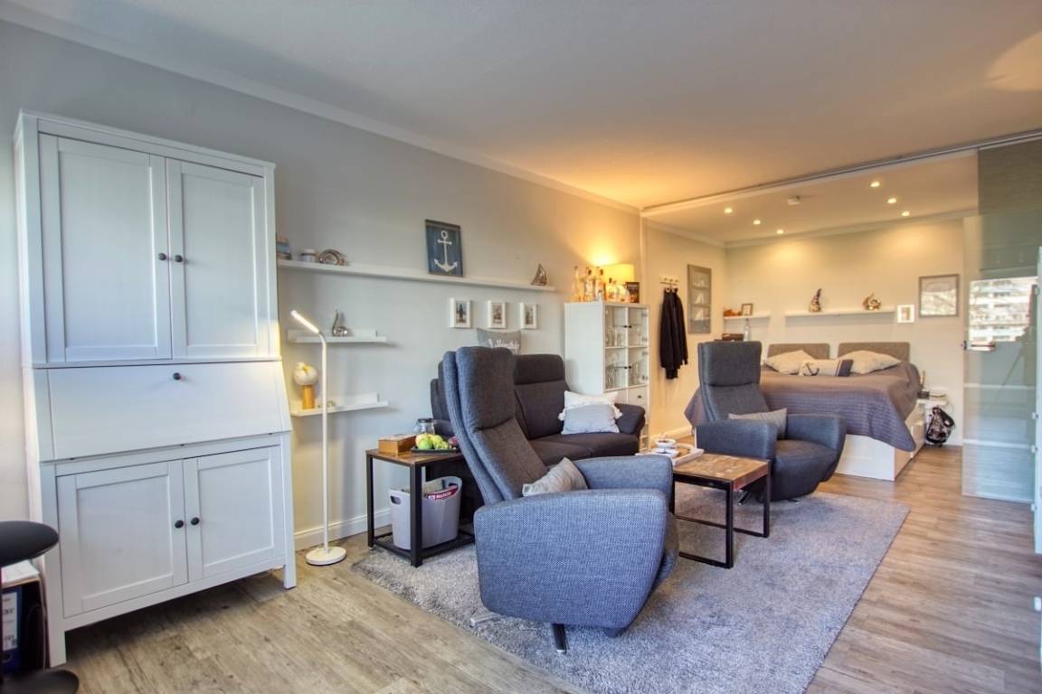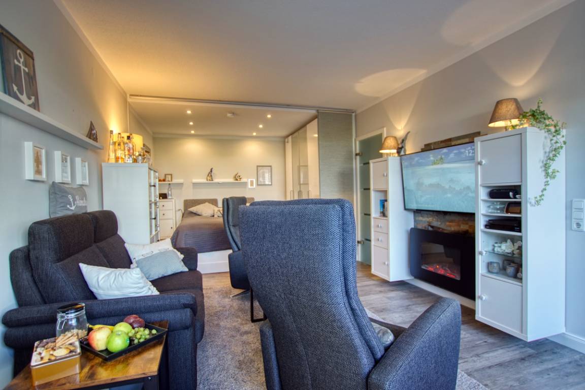Wohn-Esszimmer mit Couch und Flachbild-TV, Schlafbereich mit Doppelbett, Küche mit Kühlschrank, 4-Plattenherd, Backofen und Geschirrspüler, Bad mit WC und Dusche. WLAN, Balkon mit Innenhofblick. Nichtraucherwohnung, keine Haustiere. Belegung bis 2 Personen. Ca. 300 m zum Strand, Nähe Aktiv-Hus mit Schwimmbad, Sauna, Wellness und Gastronomie.
