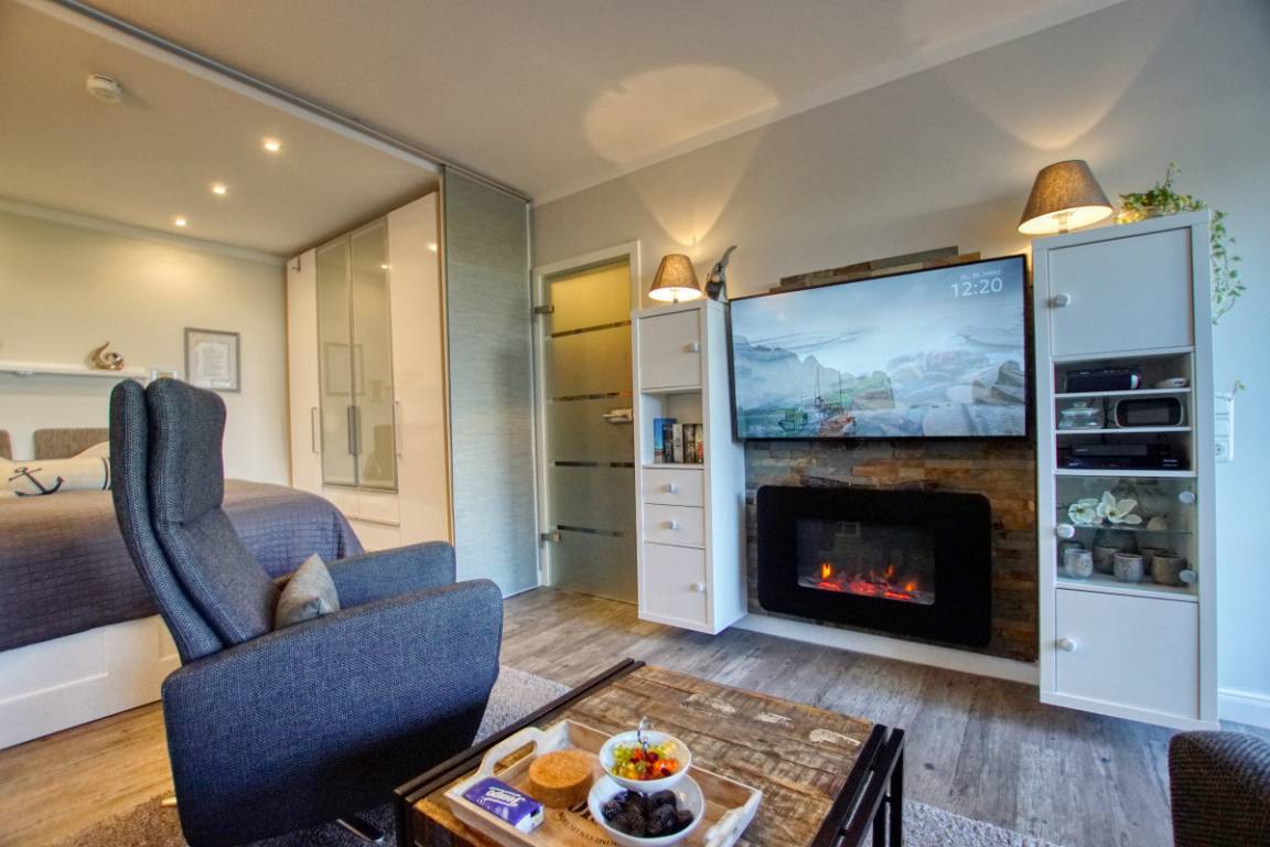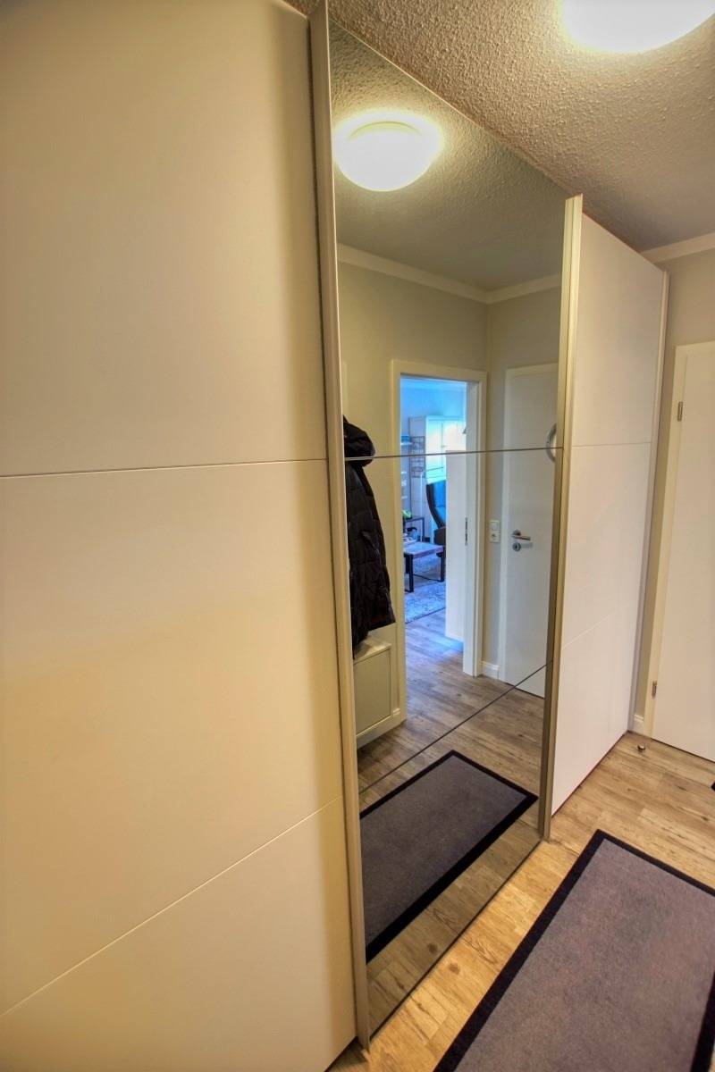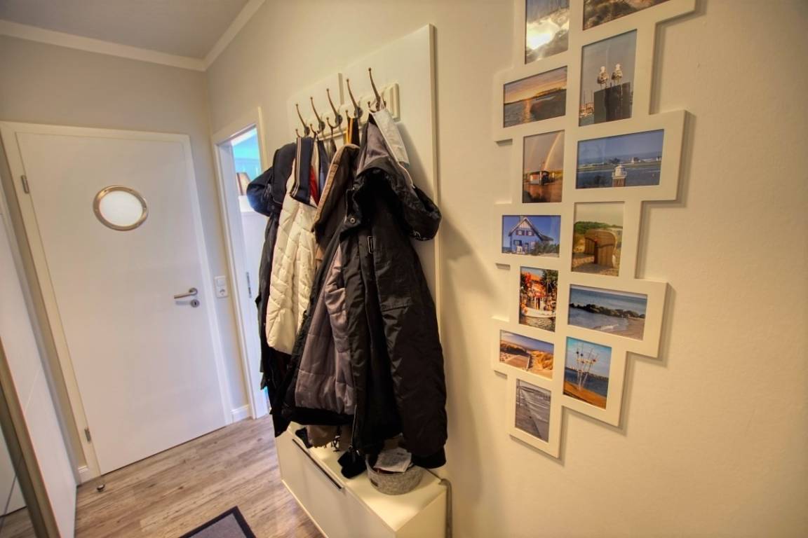Wohn-Esszimmer mit Couch und Flachbild-TV, Schlafbereich mit Doppelbett, Küche mit Kühlschrank, 4-Plattenherd, Backofen und Geschirrspüler, Bad mit WC und Dusche. WLAN, Balkon mit Innenhofblick. Nichtraucherwohnung, keine Haustiere. Belegung bis 2 Personen. Ca. 300 m zum Strand, Nähe Aktiv-Hus mit Schwimmbad, Sauna, Wellness und Gastronomie.