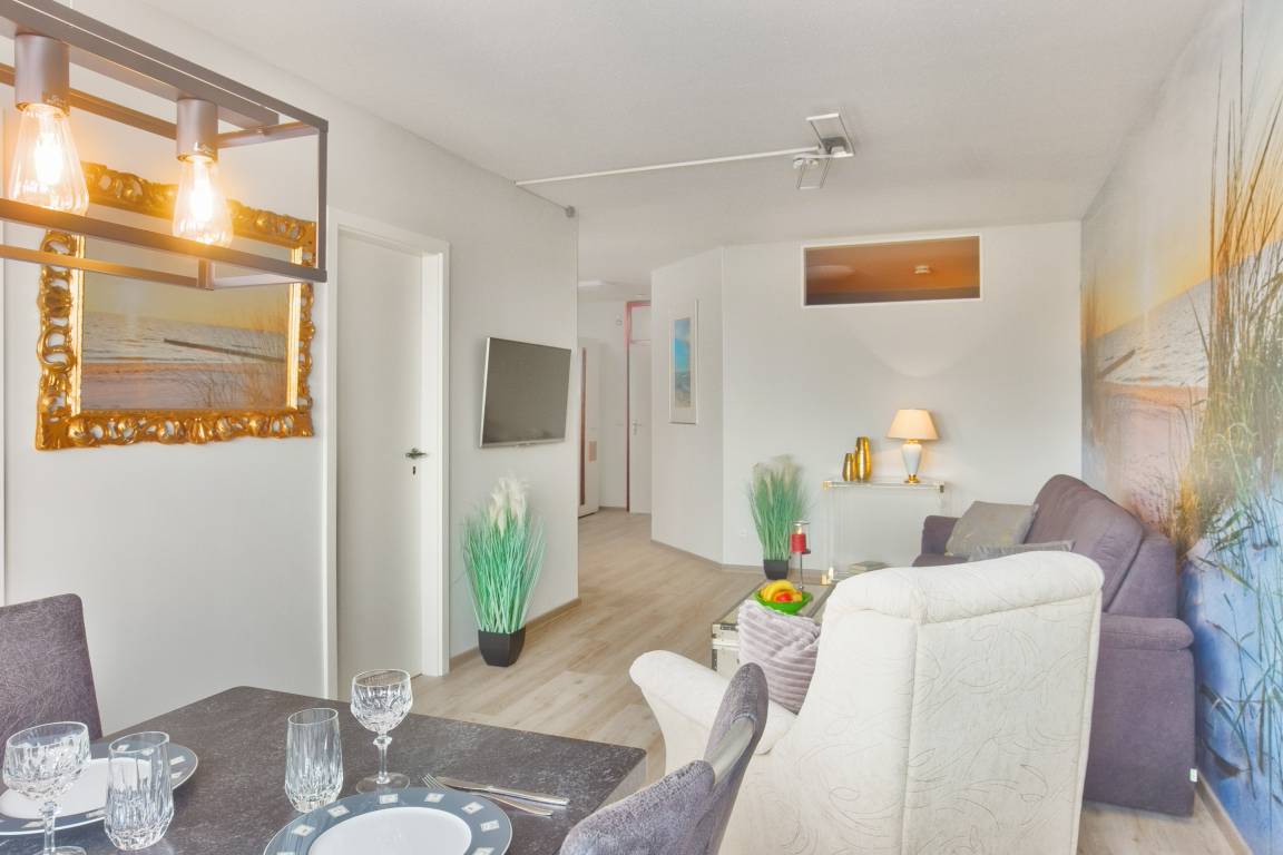 Auf ca. 53 m² im 2.Obergeschoss bietet diese Platz für bis zu 4 Personen (vorzugsweise 2 Erw + 2 Ki). Der moderne und großzügige Wohnbereich mit schöner Einrichtungslinie und gemütlichem Komfort, verbindet eine geschmackvolle, moderne Ausstattung mit einem angenehmen Ostseeblick. Näher am Wasser und zum Strand kann man in Heiligenhafen fast nicht Urlaub machen!