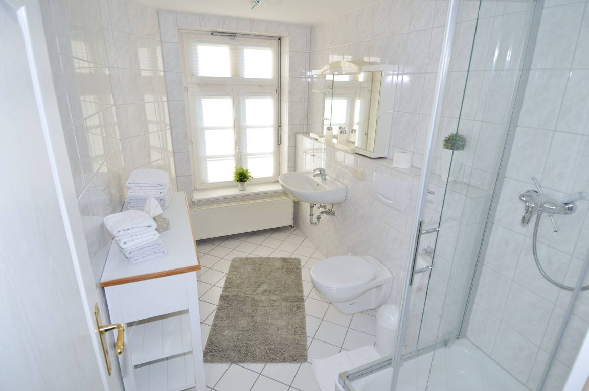 Das Badezimmer ist funktional gestaltet und bietet alles, was Sie für die tägliche Erfrischung benötigen – perfekt, um nach einem erlebnisreichen Urlaubstag neue Energie zu tanken.