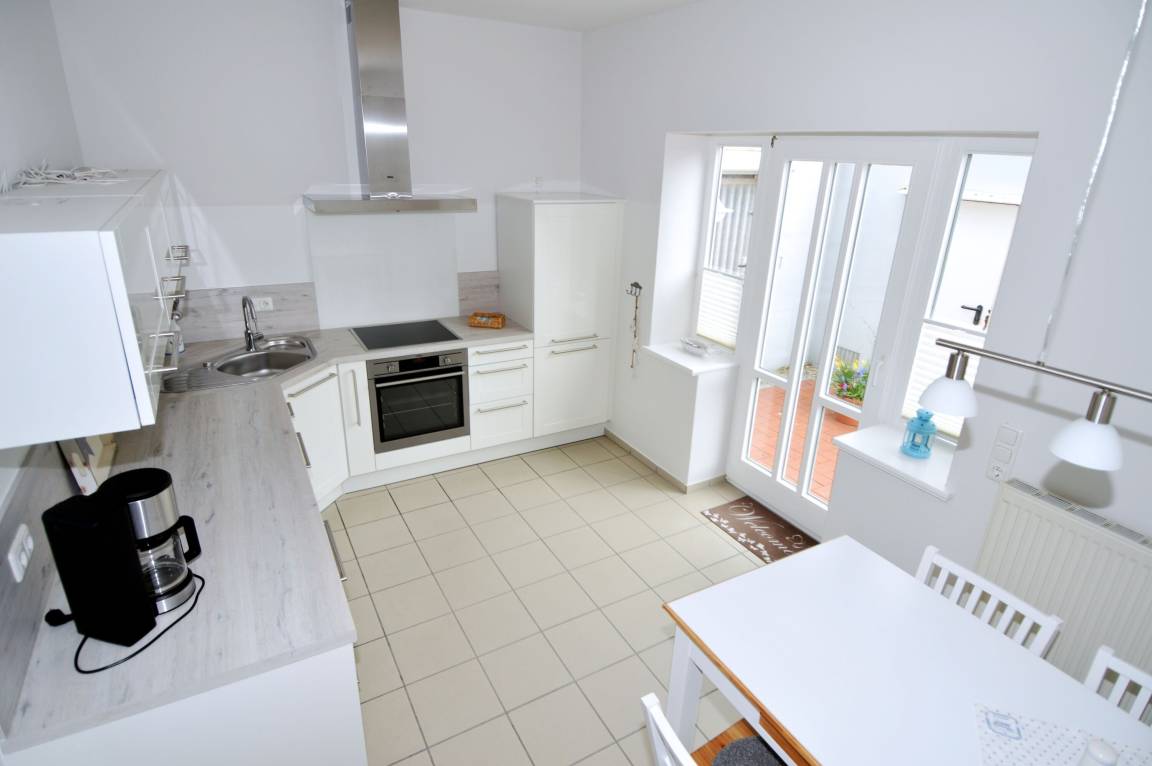 Die separate Küche ist gut ausgestattet und verfügt unter anderem über einen Geschirrspüler sowie eine Kaffeemaschine, damit Sie Ihren Urlaubstag ganz entspannt beginnen können. Der angrenzende Essbereich lädt zu gemeinsamen Mahlzeiten ein.