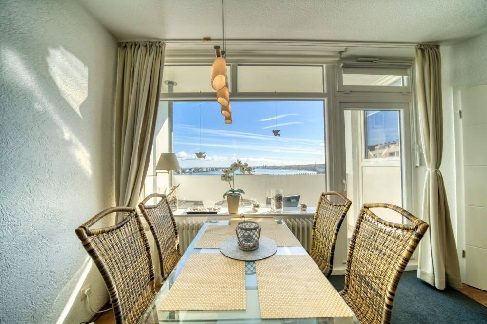 Diese gemütliche Ferienwohnung befindet sich im Haus F, in der 8. Etage, und bietet vom Balkon zur Ostseite einen wunderbaren Ausblick auf den Binnensee, die Fehmarnsundbrücke, die Stadt und den Yachthafen – mit teilweisem Blick auf die Ostsee. Auf ca. 45 m² ist sie ideal für bis zu 4 Personen. Wohn-/Esszimmer mit Sitzecke, TV und Radio, abgetrennter Schlafbereich mit Doppelbett, separates Kinderzimmer mit Etagenbett. Einbauküche mit Ceranfeld, Backofen, Kühlschrank und Geschirrspüler. Bad mit Dusche/WC. Balkon mit Ostblick, kostenloses WLAN. Aktiv-Hus mit Schwimmbad, Sauna, Wellness, Kinderspielwelt, Einkaufsmöglichkeiten. Ca. 300 m zum Strand, abschließbare Fahrradräume, Parkplatz hinter dem Ferienpark. Nichtraucher, keine Haustiere, Fahrstuhl.