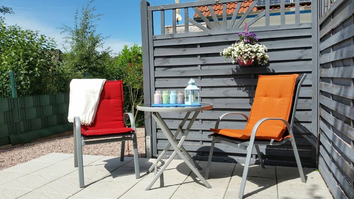 Die Terrasse eignet sich ideal für eine Pause an der frischen Luft. Genießen Sie hier Ihren Morgenkaffee oder lassen Sie den Urlaubstag entspannt ausklingen.