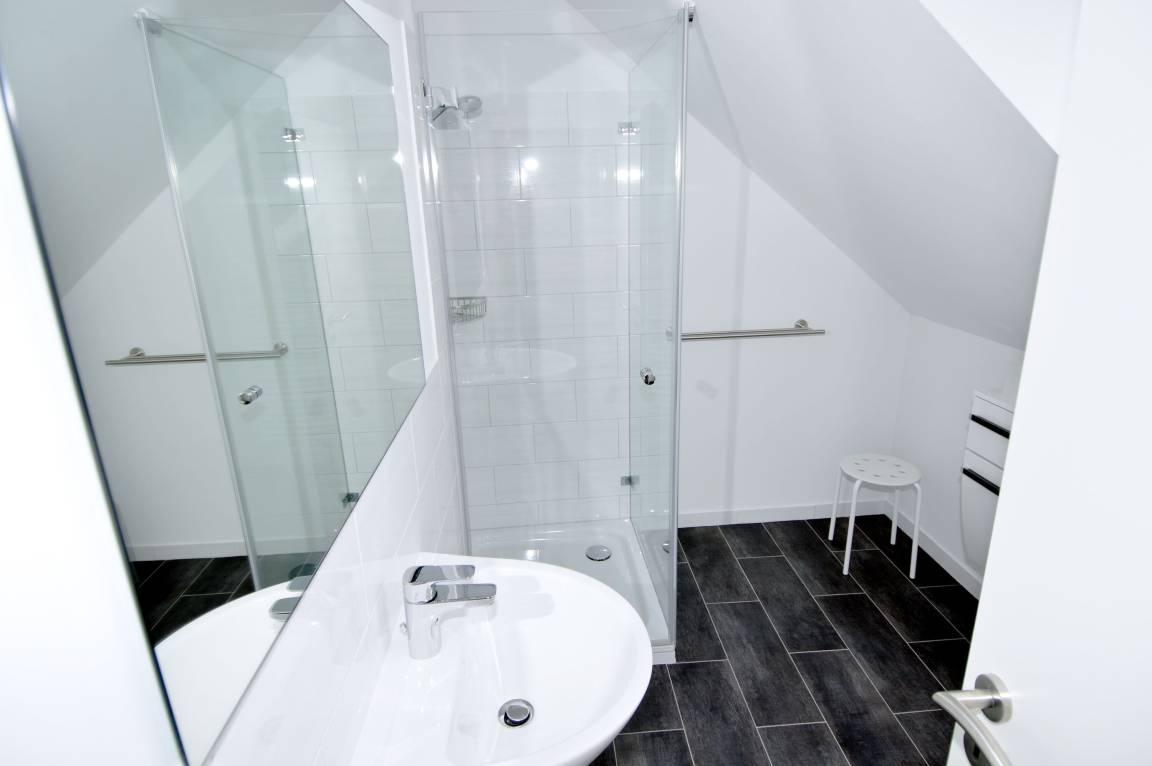 Das Badezimmer ist funktional und modern gestaltet und rundet den Wohnkomfort harmonisch ab.