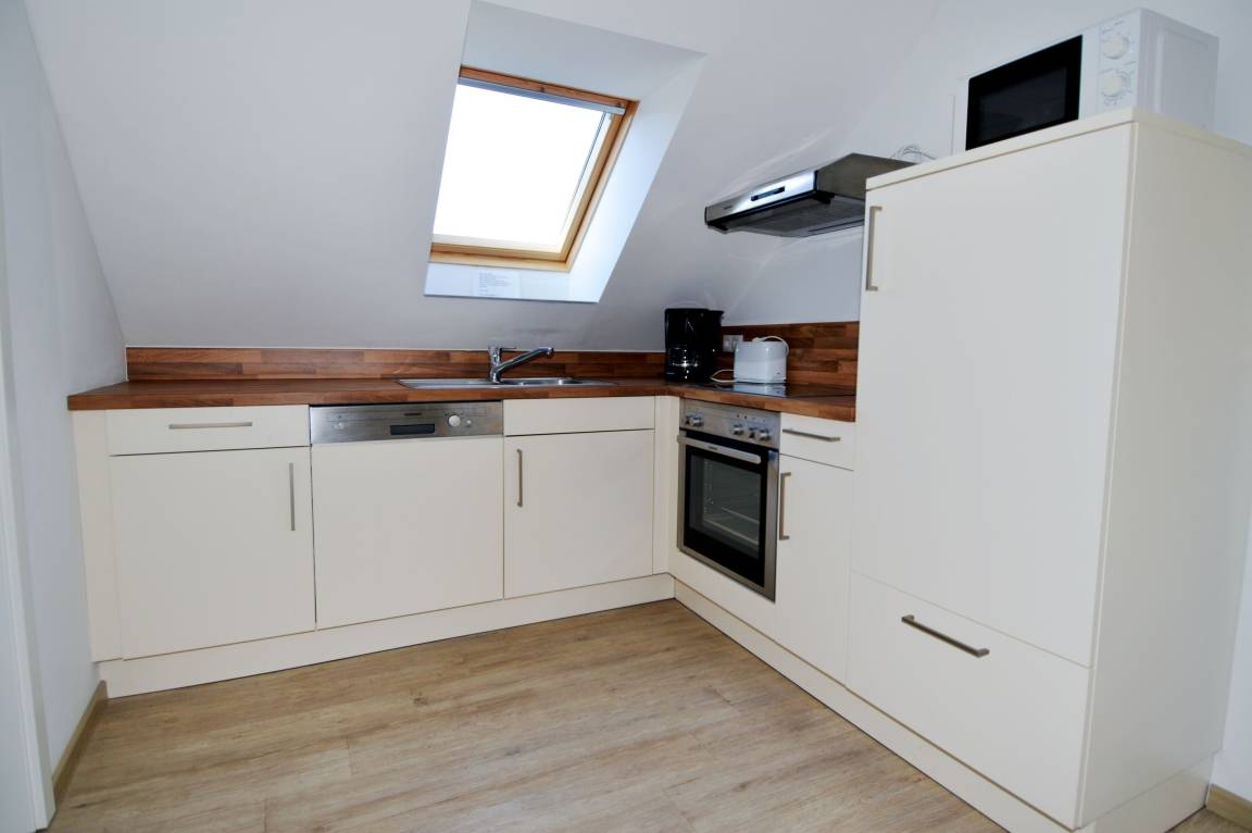 Die Küche ist praktisch und modern ausgestattet und bietet alles, was Sie für die Selbstversorgung während Ihres Aufenthaltes benötigen. Ein Geschirrspüler erleichtert den Urlaubsalltag und sorgt für zusätzlichen Komfort, sodass Sie mehr Zeit für Erholung und Unternehmungen haben.