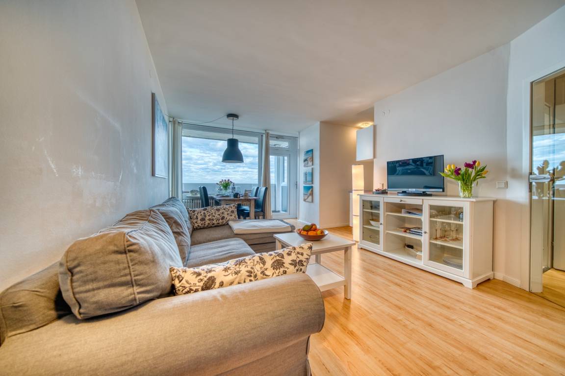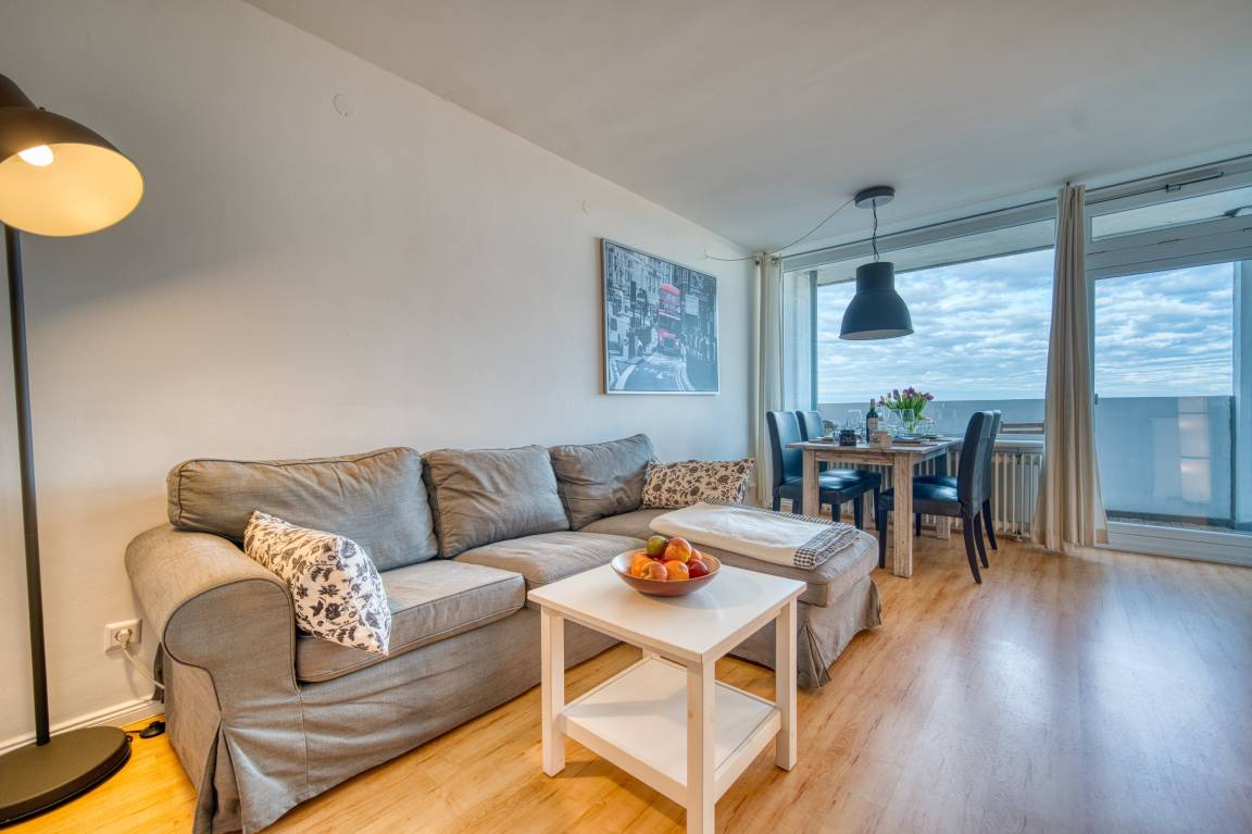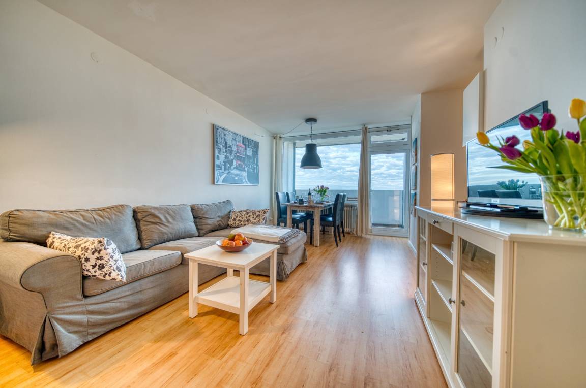 Erleben Sie erholsame Urlaubstage in der gemütlichen Ferienwohnung „Ferienpark – Haus B, App. 0B0812" in Heiligenhafen. Die Unterkunft liegt im 8. Obergeschoss und bietet vom Balkon aus einen traumhaften Meerblick über die Salzwiesen bis zur Ostsee. Mit 45 m² Wohnfläche ist die Wohnung ideal für bis zu 3 Personen geeignet – perfekt für Paare oder kleine Familien.