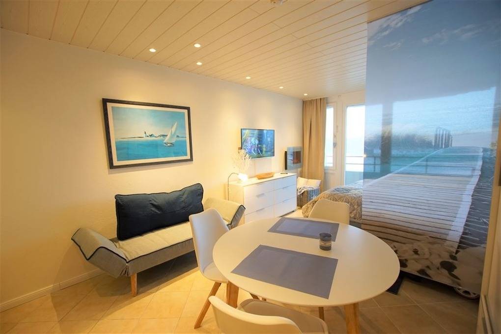 Diese 30 m² große Ferienwohnung in der 6. Etage des Appartementhauses „Steinwarder 35" in Heiligenhafen ist ideal für 2 Personen. Mit Balkon und Blick auf den Binnensee, nur ca. 10 m vom Strand entfernt, bietet sie eine perfekte Kombination aus Ruhe und Strandnähe.
