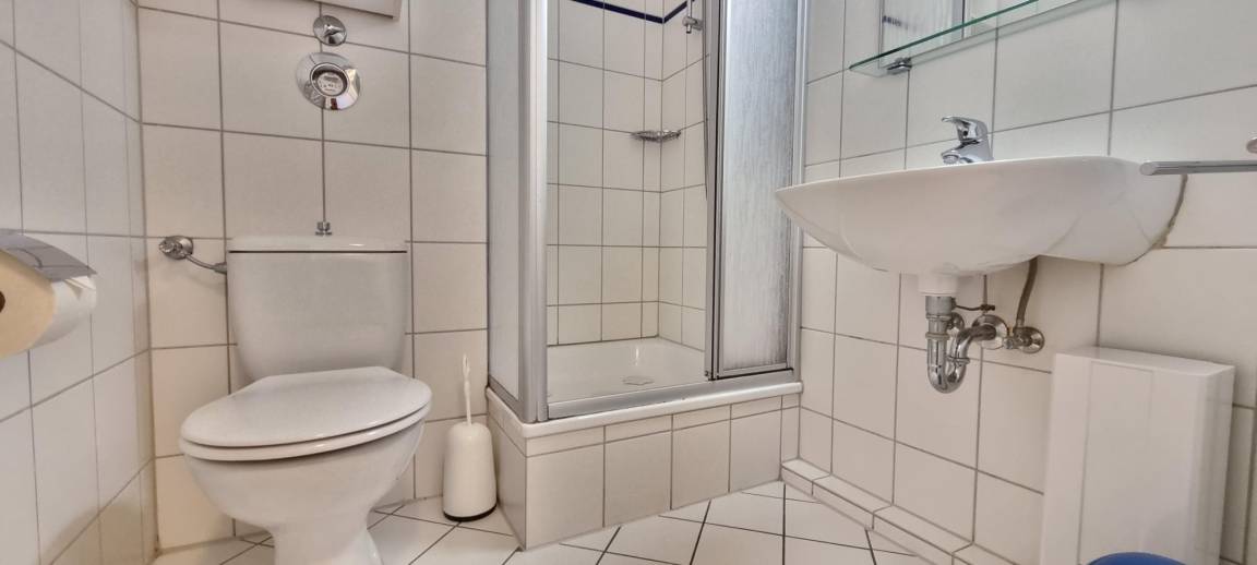 Die praktische Küchenzeile ermöglicht eine unkomplizierte Selbstversorgung, sodass Sie Frühstück, Snacks oder ein gemütliches Abendessen jederzeit bequem zubereiten können. Das moderne Duschbad rundet die Ausstattung ab und sorgt für einen angenehmen Start in den Urlaubstag.