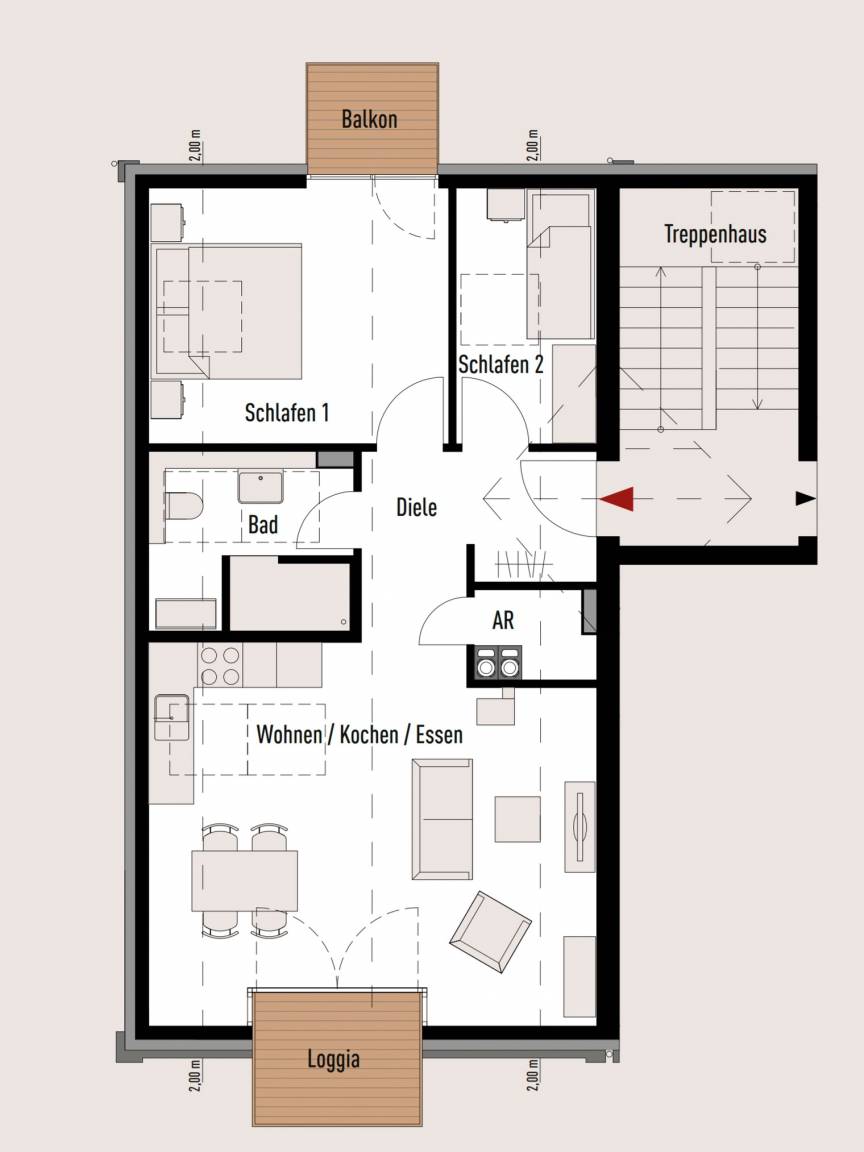 58 m² Ferienwohnung ∙ 2 Schlafzimmer ∙ 3 Gäste