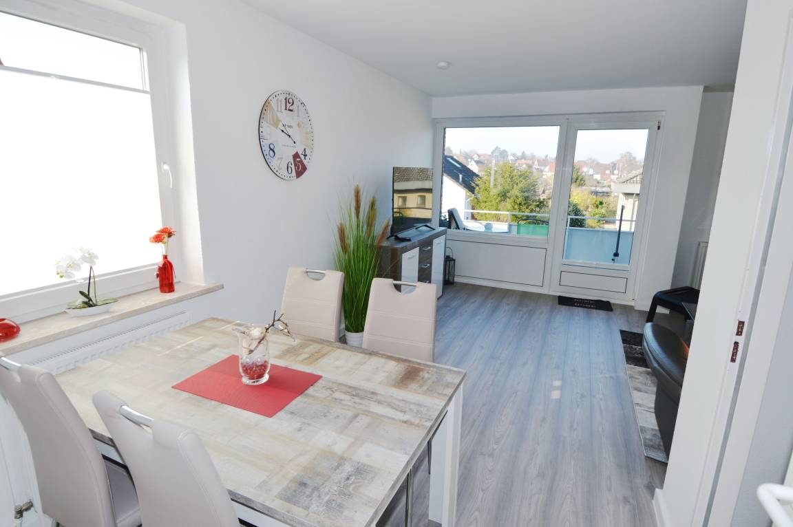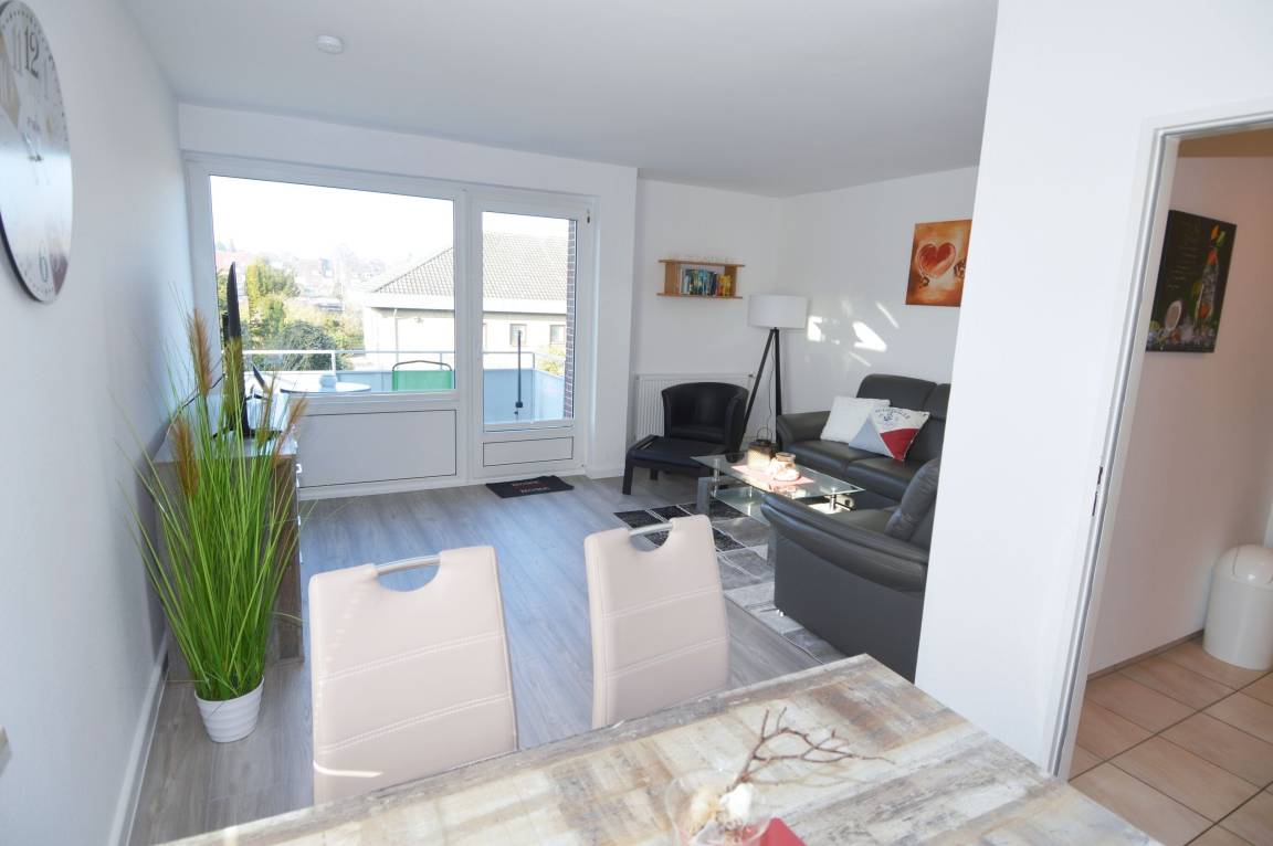 Ein möblierter Balkon lädt dazu ein, den Tag entspannt im Freien zu beginnen oder ausklingen zu lassen. Zur Wohnung gehört ein PKW-Stellplatz direkt am Haus. Im Keller steht den Gästen eine gemeinschaftlich nutzbare Waschmaschine mit Münzeinwurf zur Verfügung.