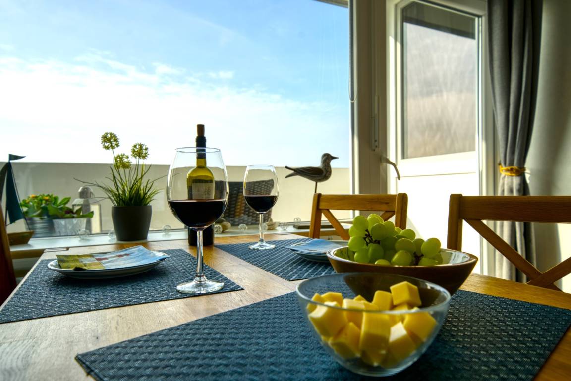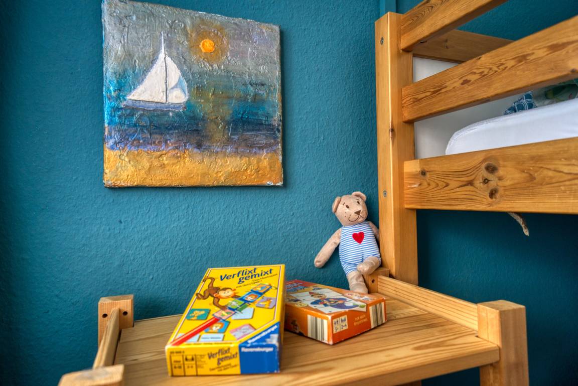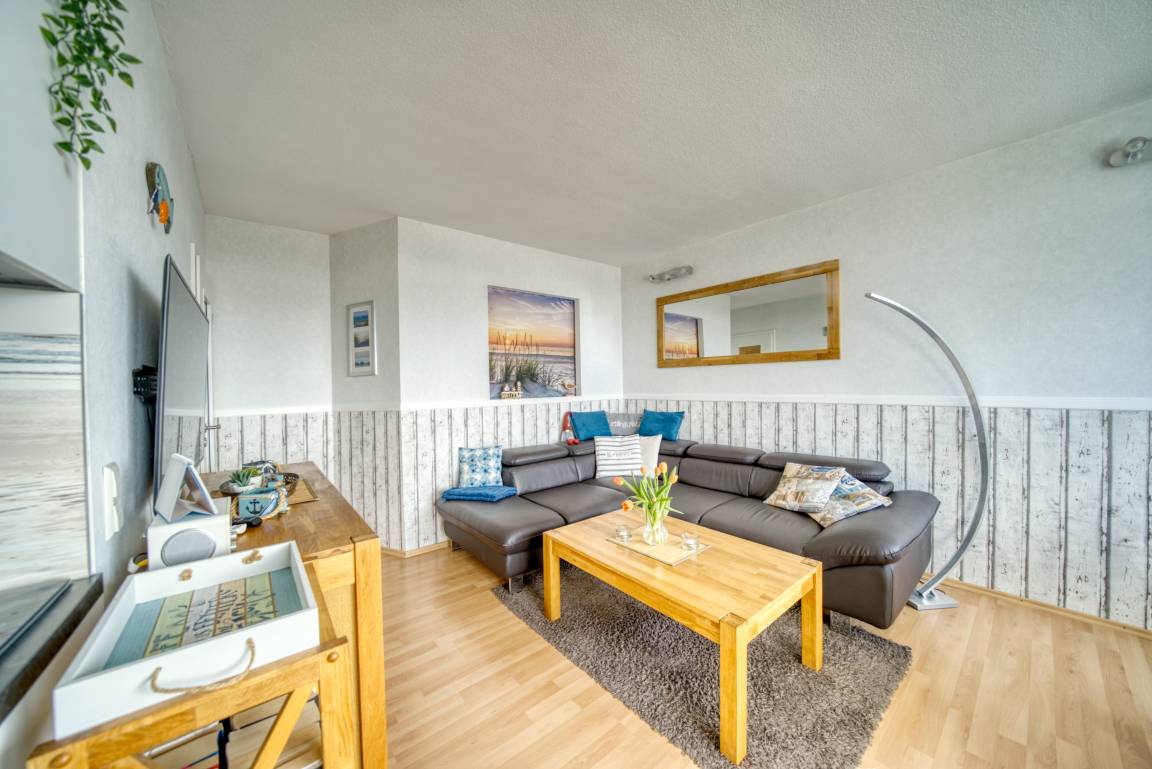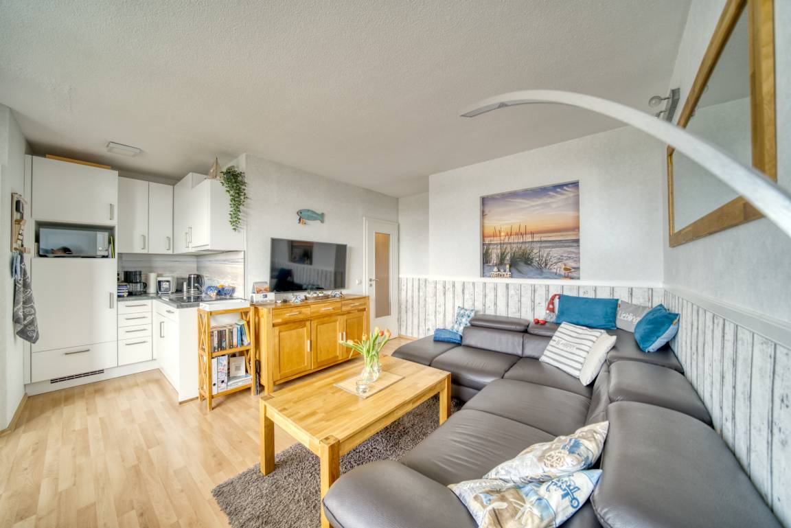 Wohn-/Esszimmer mit LCD-Smart-TV, Internetradio, DVD-Player; Elternschlafzimmer (Doppelbett, TV), Kinderzimmer mit Etagenbett. Küche mit Geschirrspüler, Kühlschrank, Cerankochfeld, Kaffeemaschine, Mikrowelle/Heißluft, Stabmixer. Bad mit Dusche/WC. Bonus: WLAN, Fahrstuhl, Parkplatz. Nichtraucher, keine Haustiere. Strand ca. 300 m, Ferienpark mit Läden, Aktiv-Hus, Schwimmbad, Sauna, Wellness und Kinderspielwelt – ideal für erholsame und abwechslungsreiche Urlaubstage.