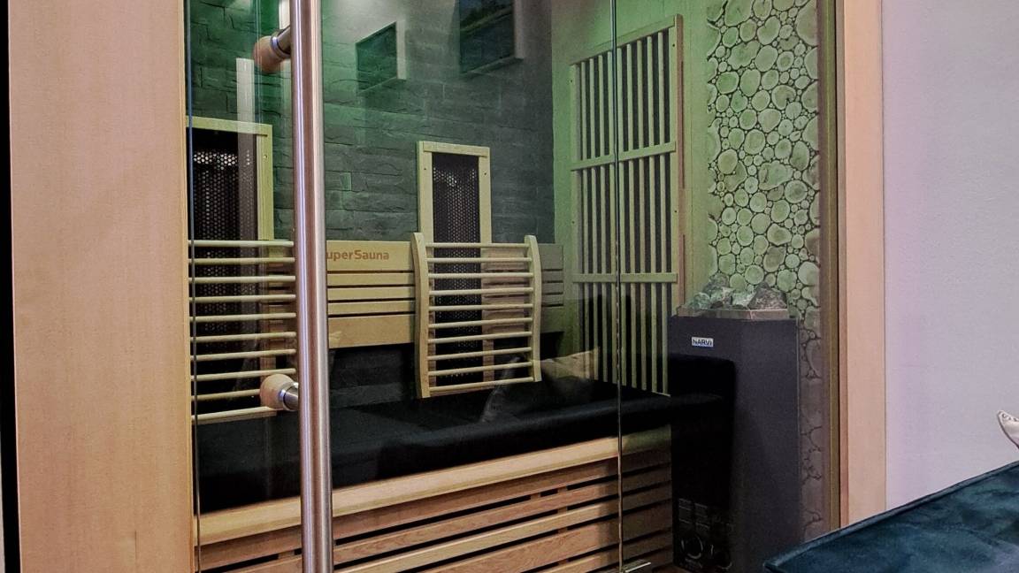 Ein besonderes Highlight ist die wohnungseigene Infrarot-/Kombisauna. (Die therapeutische Infrarotkabine mit finnischer Sauna kombiniert, bietet zusätzliche Erholung und Wohlfühlmomente).