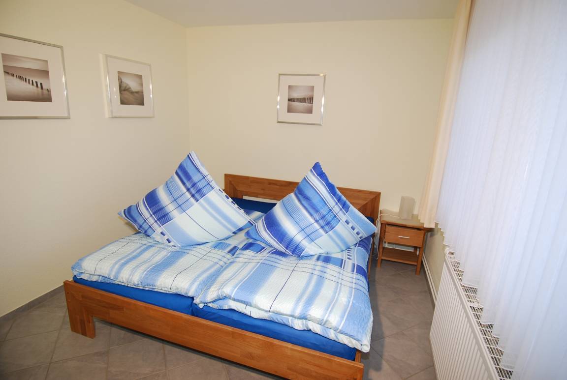 Das Schlafzimmer ist mit einem Doppelbett (180x200) sowie einem Kleiderschrank ausgestattet. Verdunklung erfolgt über Vorhänge.