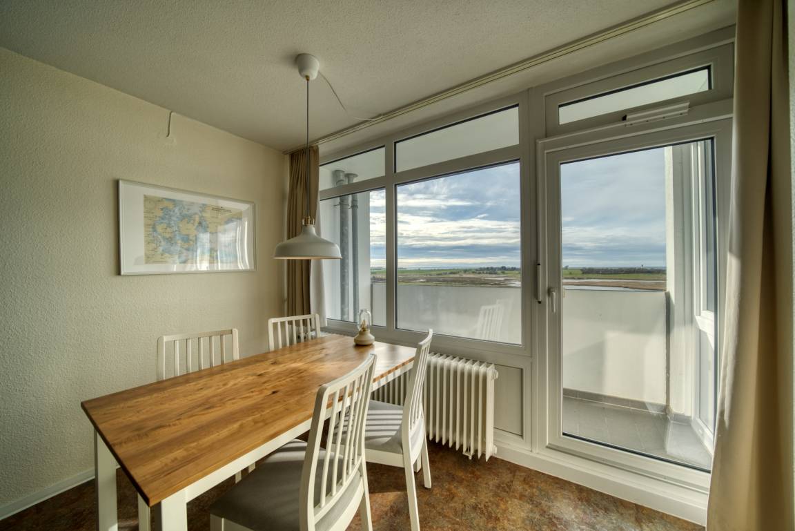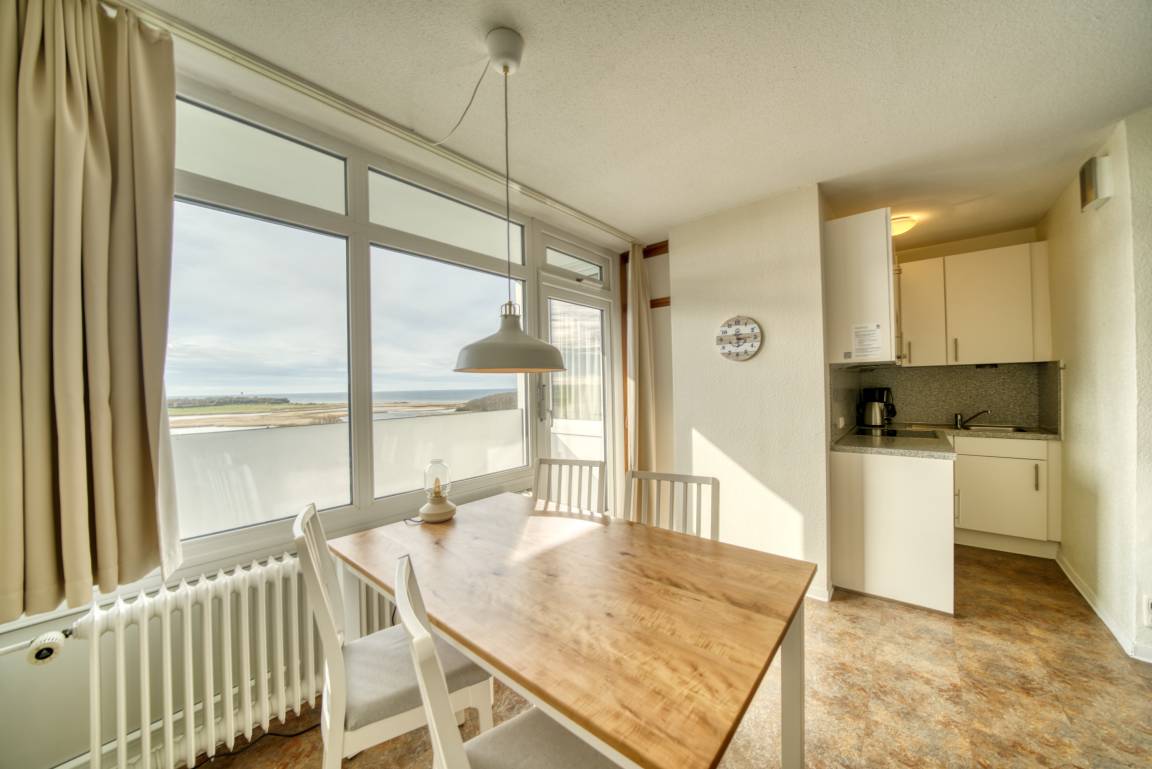 Verbringen Sie Ihren unvergesslichen Urlaub in dieser komfortablen Ferienwohnung im 7. Obergeschoss des Hauses G im Ferienpark Heiligenhafen. Mit einer großzügigen Wohnfläche von 45 m² und Platz für bis zu 4 Personen, ist diese Wohnung perfekt für Familien oder kleine Gruppen. Genießen Sie den wunderschönen Ostseeblick vom Balkon, der mit einer praktischen Markise ausgestattet ist, um auch an sonnigen Tagen im Schatten zu entspannen.