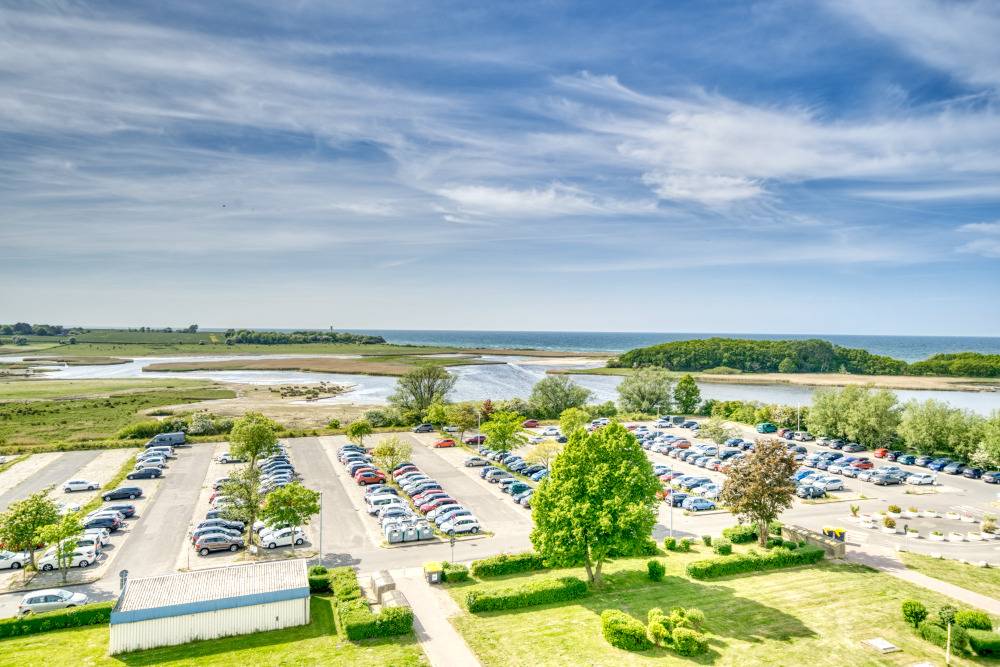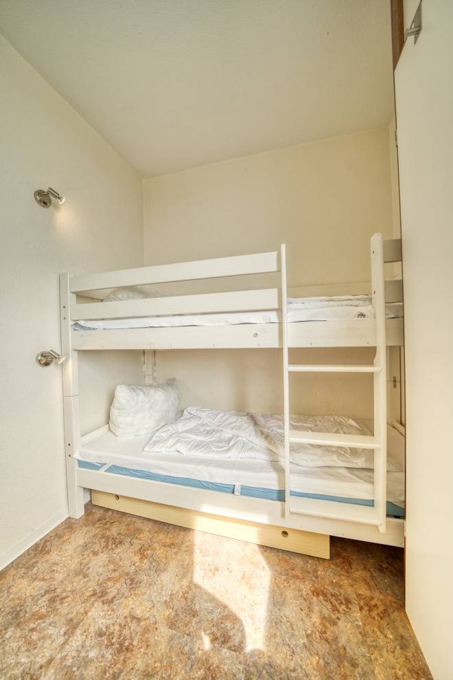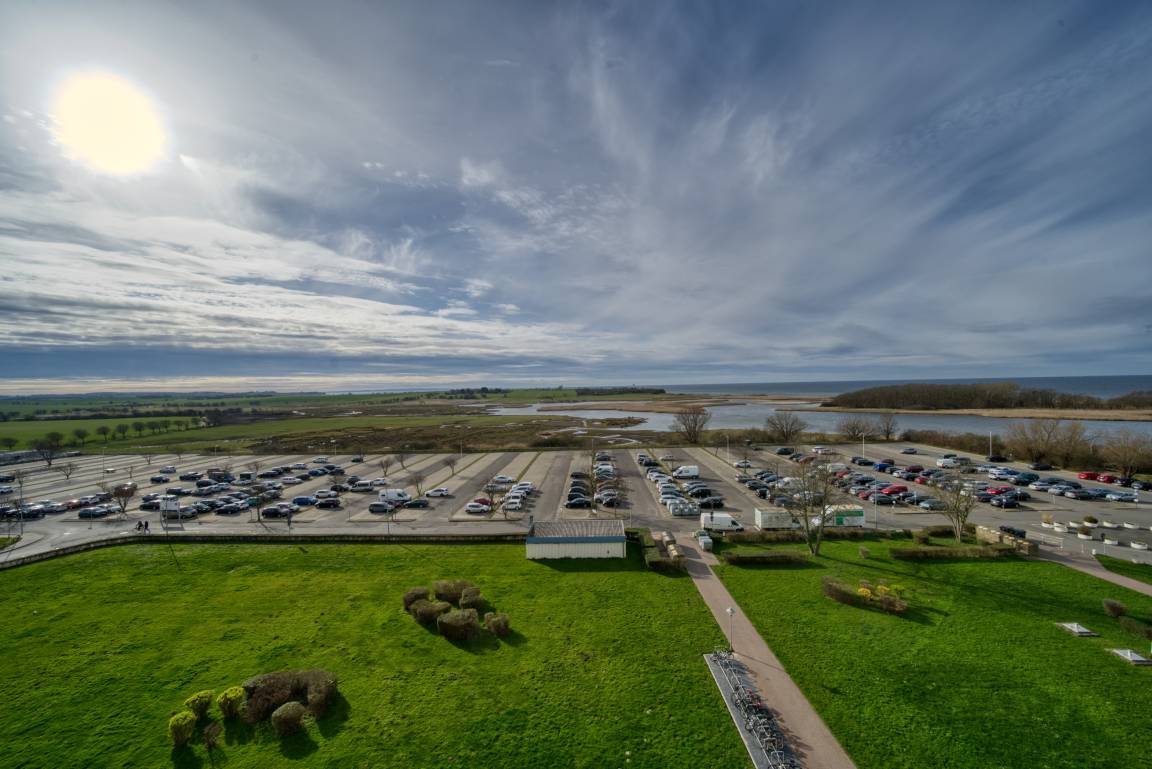 Wohn-/Schlafbereich mit Doppelbett und Smart-TV, separates Schlafzimmer mit Etagenbett. Küche mit Ceranherd, Kühlschrank/Gefrierfach, Mikrowelle, Toaster, Filterkaffeemaschine, Wasserkocher. Bad mit Dusche/WC. Esstisch mit Blick auf die Ostsee. Vinylboden. Bonus: WLAN, Fahrstuhl, Parkplatz. Nichtraucher, keine Haustiere. Strand ca. 300 m, Ferienpark mit Läden, Aktiv-Hus, Schwimmbad, Sauna, Wellnesslandschaft und Kinderspielwelt – ideal für abwechslungsreiche Tage am Meer.
