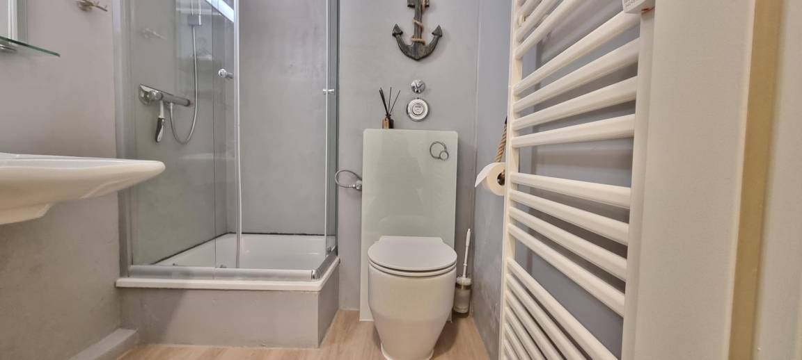 Dieses, im Mai 2021 komplett renovierte und ca. 50qm große Appartement, zeichnet sich durch zwei getrennte Schlafräume (Kojen) aus. Zudem hat man einen traumhaften Blick (aus dem 4.OG) auf das Meer und die Salzwiesen.