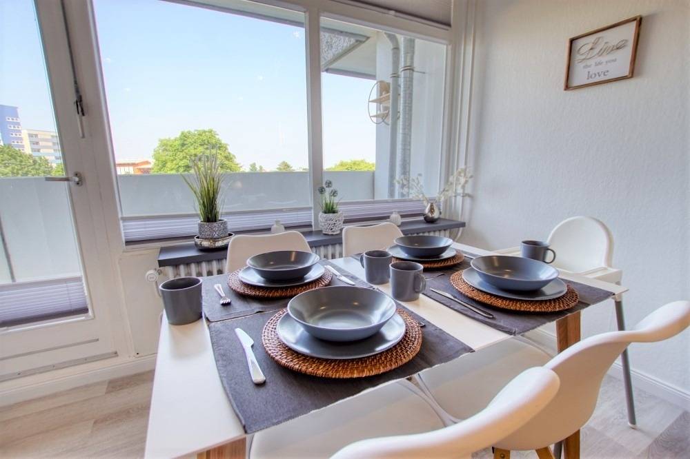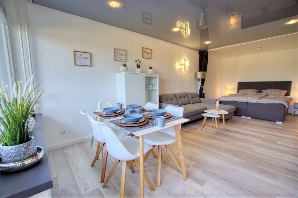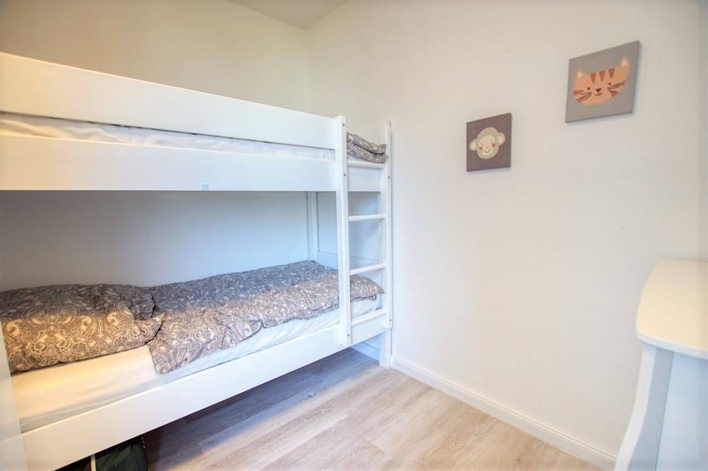 Die 45 m² Wohnung verfügt über Wohn-Esszimmer, Elternschlafbereich mit Doppelbett, Kinderzimmer mit Hochbett, hochwertige Vinylböden, Designer-Spanndecke mit LED-Spots, komplett ausgestattete Küche mit Ceranfeld, Kühlschrank/Gefrierfach, Kaffeemaschine, Wasserkocher und Toaster sowie neues Bad mit Dusche/WC. Bonus: WLAN, Eintritt im Indoorspielplatz im Aktiv-Hus, Babyreisebett und Kinderhochstuhl. Nichtraucher, keine Haustiere, Fahrstuhl, kostenfreier Parkplatz. Strand ca. 300 m entfernt, kurze Promenade zum Wasser.