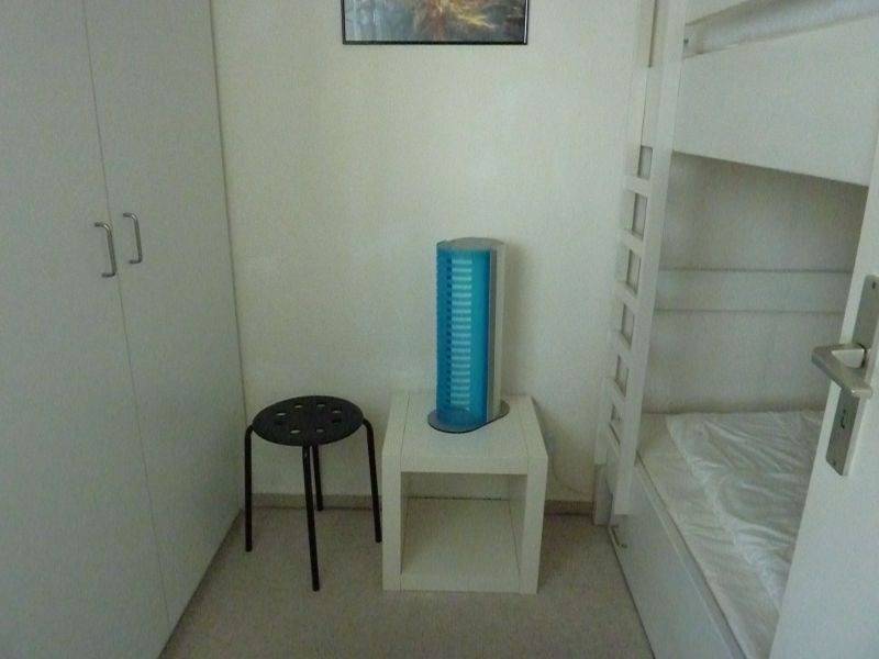 Die integrierte Schlafnische ist mit einem gemütlichen Doppelbett (140 cm) und einem geräumigen Kleiderschrank ausgestattet. Für Kinder gibt es ein separates Schlafzimmer mit stabilem Etagenbett (190 cm), das ausreichend Platz und Komfort bietet.