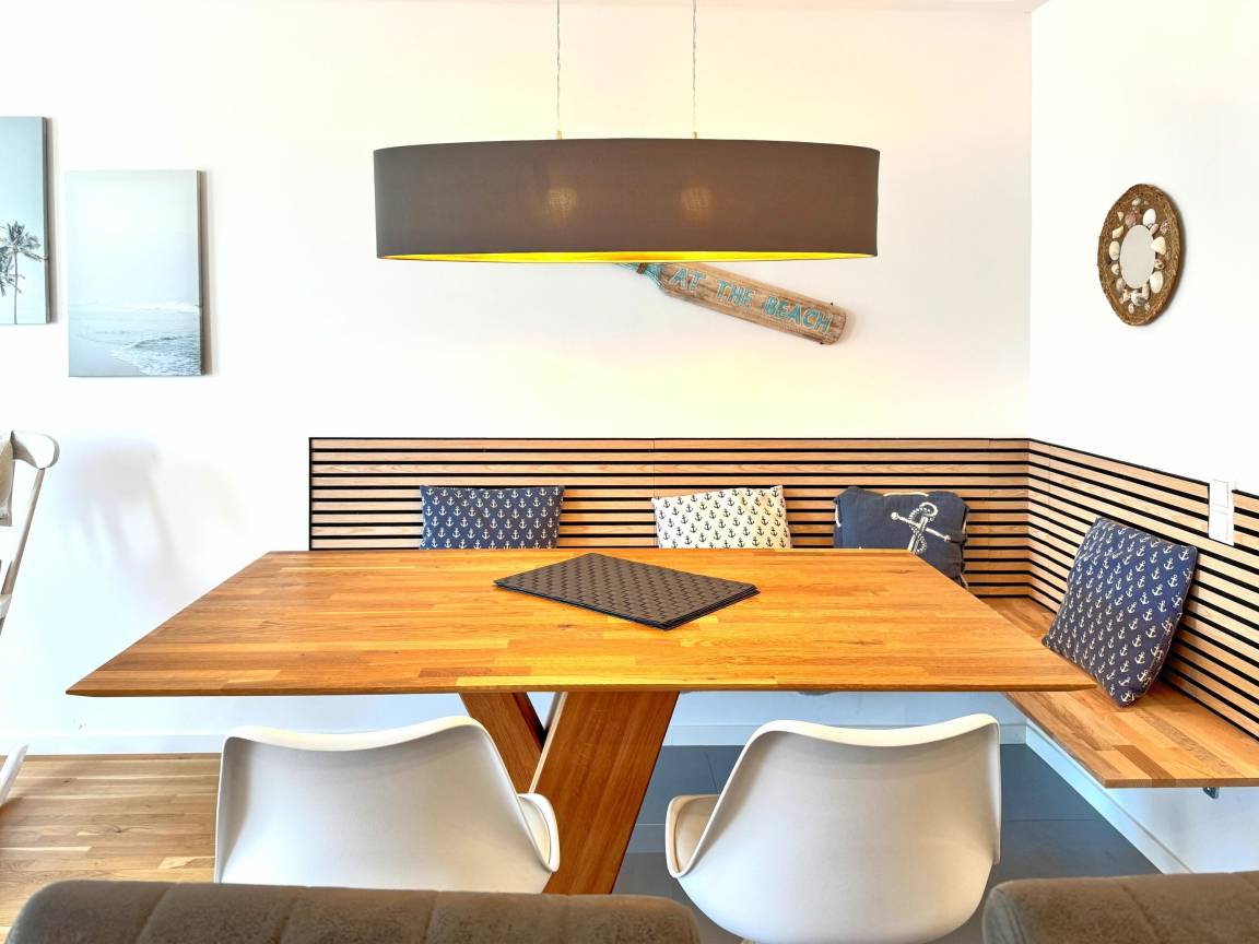 Diese stilvolle Ferienwohnung bietet mit ihren 93 Quadratmetern im Erdgeschoss jede Menge Platz für bis zu vier (+1) Personen. Sie vereint modernes Design mit gemütlichem Ostsee-Flair und sorgt für einen entspannten Urlaub mit der ganzen Familie.