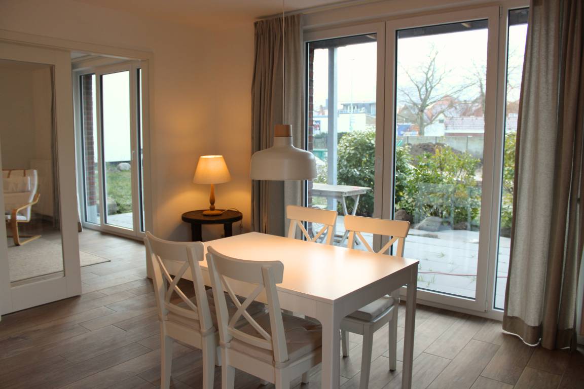 Die offene, vollausgestattete Küche mit Spüler lässt nichts vermissen und bietet Ihren kulinarischen Wünschen viel Spielraum. Ein Essbereich ist natürlich direkt neben der Küche vorhanden. Das moderne Duschbad mit bodentiefem Einstieg und WC bietet Ihnen einen weiteren Wohlfühlfaktor. Pflegeleichte Böden sorgen für Komfort. Dies ist eine Nichtraucher Unterkunft. Geraucht werden kann in der Raucherecke auf dem Parkplatz oder der Terrasse, welche Sie bequem aus dem Wohnzimmer erreichen. Genießen Sie hier die Morgensonne! Aufgrund eines weiteren Hausbaus stehen die Parkplätze derzeit nicht zur Verfügung. Auf der gegenüberliegende Straßenseite kann kostenfrei geparkt werden.