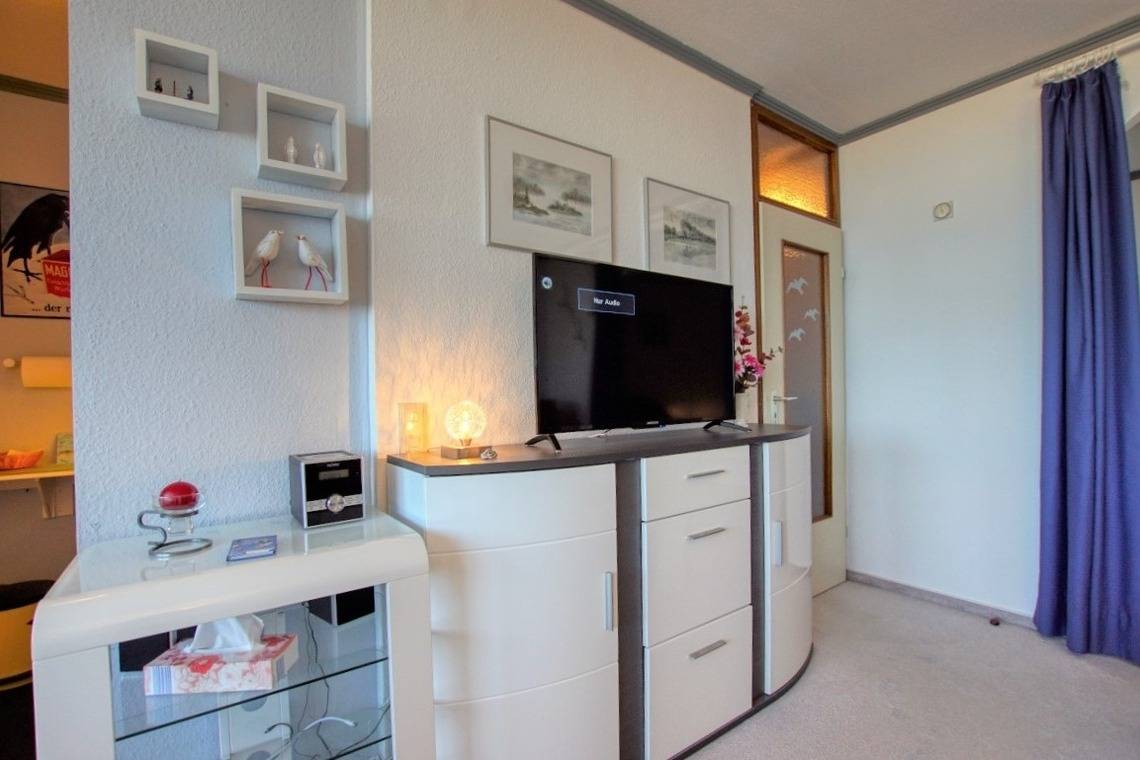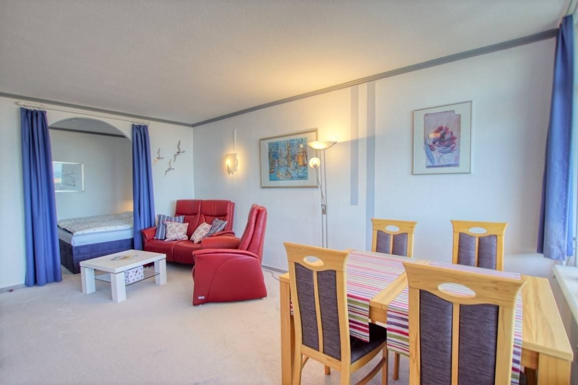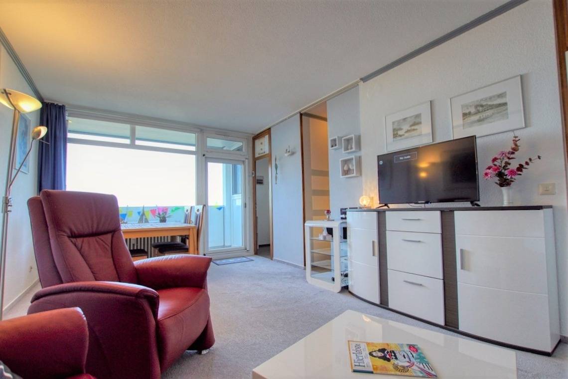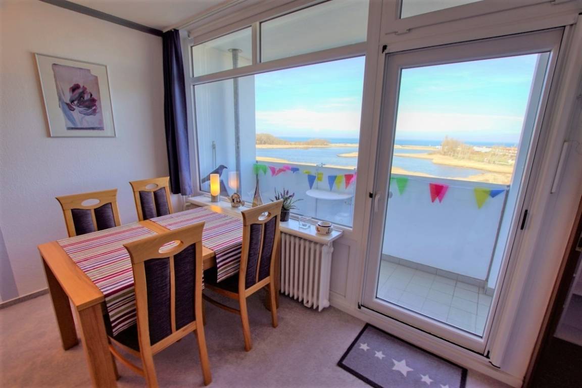 Verbringen Sie erholsame Urlaubstage in dieser 45 m² großen Ferienwohnung im Haus A des Ferienparks Heiligenhafen. Die Wohnung befindet sich in der 4. Etage und bietet vom Nordbalkon einen schönen Blick auf die Ostsee. Sie ist ideal für bis zu 3 Personen geeignet.
