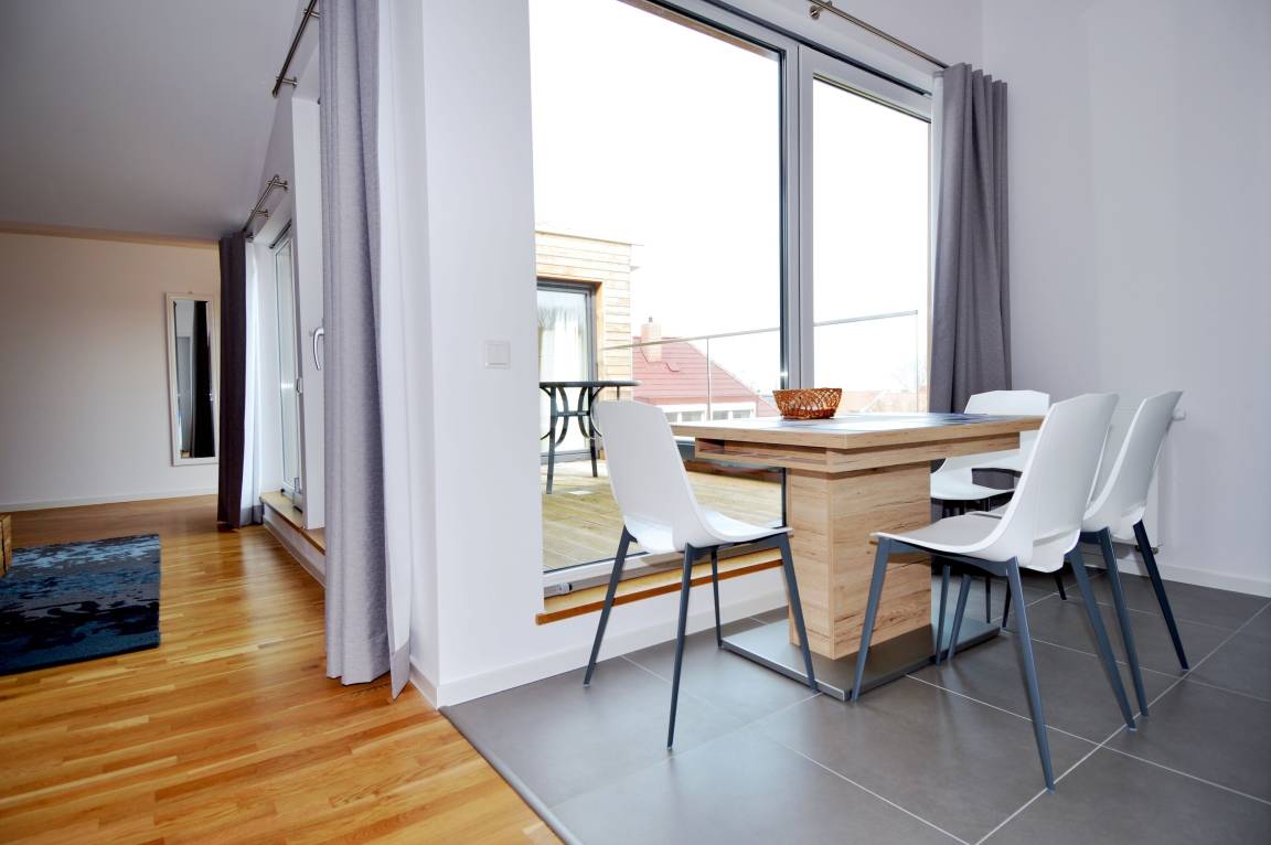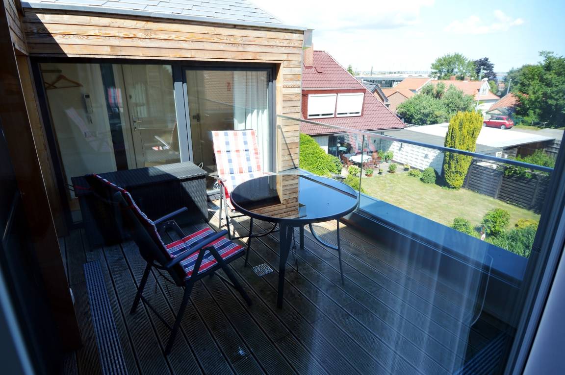 Die beiden großzügigen Balkone sind perfekt, um die herrliche Vormittagssonne sowie die entspannende Nachmittagssonne zu genießen. Von hier aus erhaschen Sie in der Ferne einen kleinen Blick auf die Ostsee, der zum Träumen einlädt. Stellen Sie sich vor, wie Sie bei einem Glas Wein oder einer Tasse Kaffee die frische Brise und die Sonne genießen.