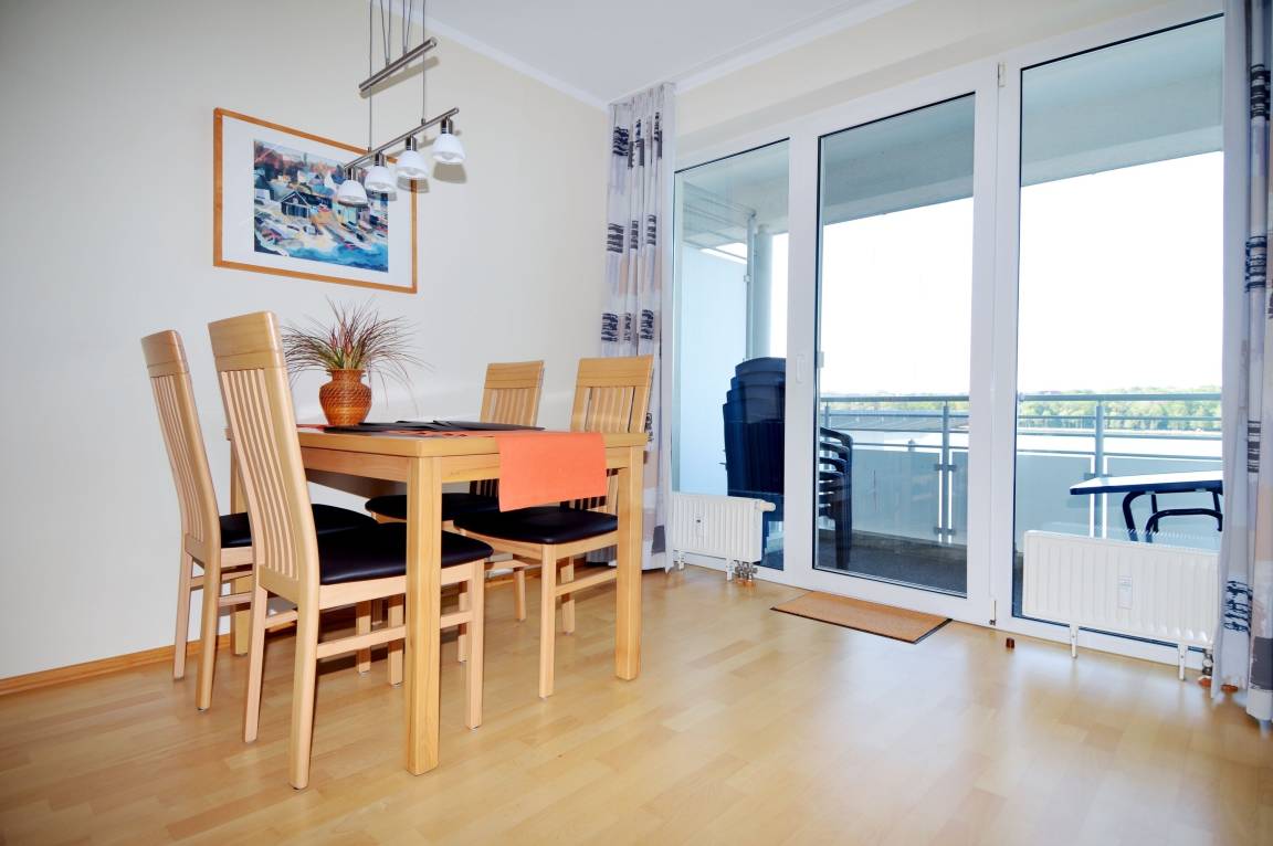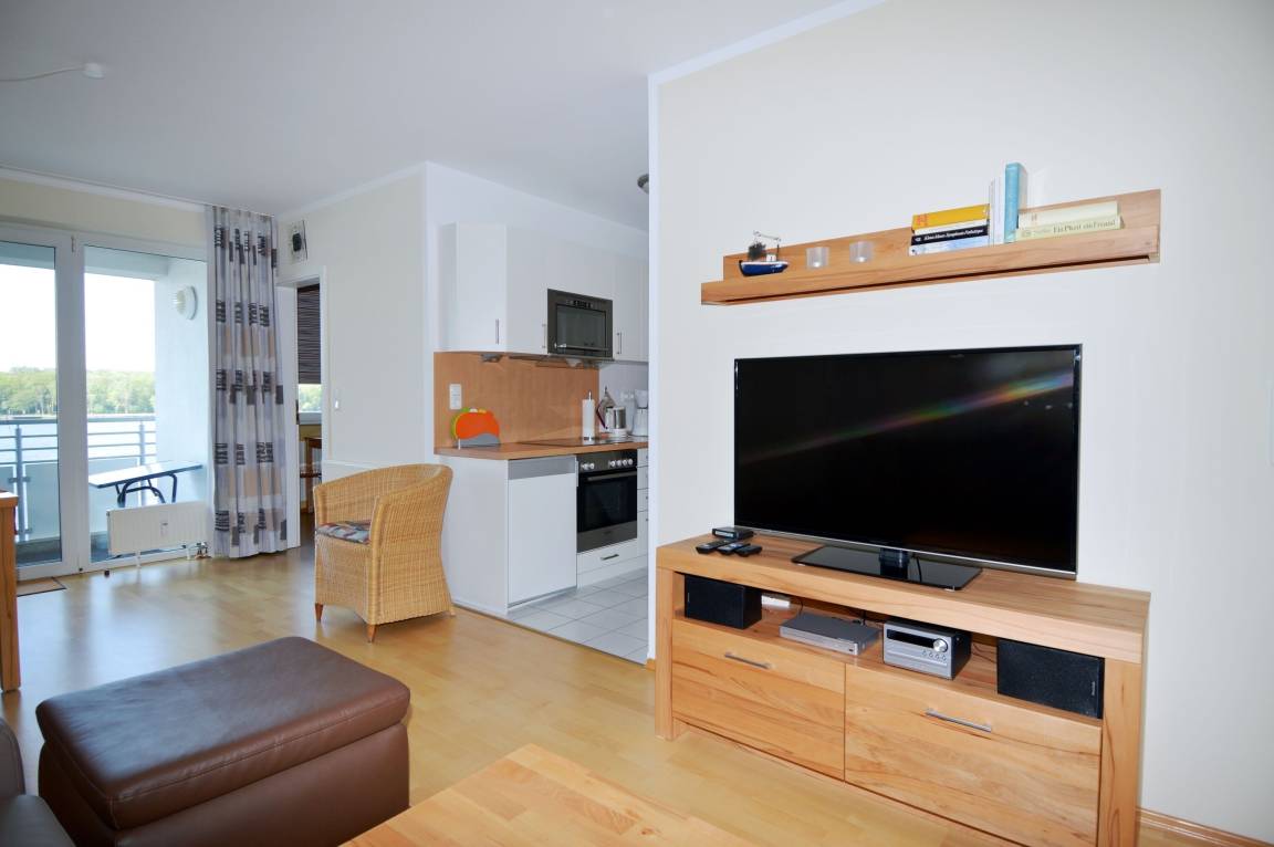 Ein besonderes Highlight ist der Südbalkon, von dem aus Sie einen wunderschönen Blick auf den Binnensee genießen können. Ob bei einer Tasse Kaffee am Morgen oder beim entspannten Ausklang des Tages – hier lässt sich das maritime Urlaubsgefühl in vollen Zügen erleben.