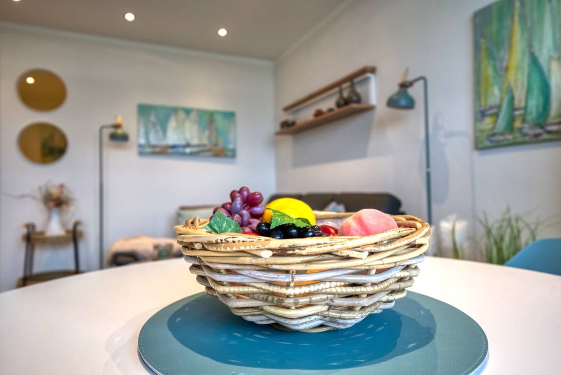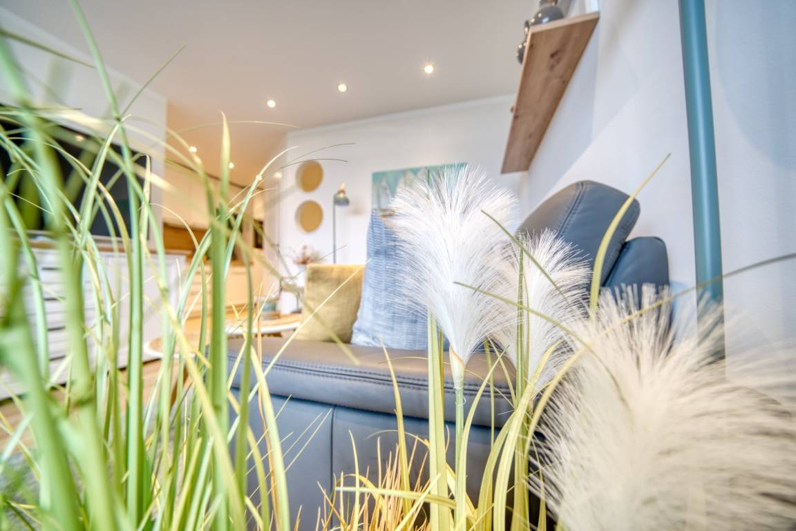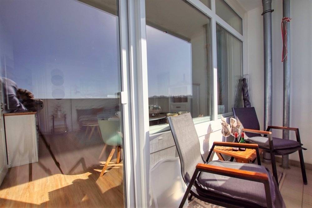 Willkommen in Ihrer hochwertig ausgestatteten Ferienwohnung im Haus K des Ferienparks Heiligenhafen! Diese stilvolle Unterkunft in der 5. Etage bietet auf 45 m² Wohnfläche ein durchdachtes Raumkonzept und einen sonnigen Balkon mit Blick auf die umliegenden Felder und die blühenden Rapslandschaften – ideal für Gäste, die Ruhe und Komfort an der Ostsee suchen.