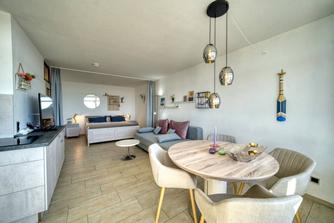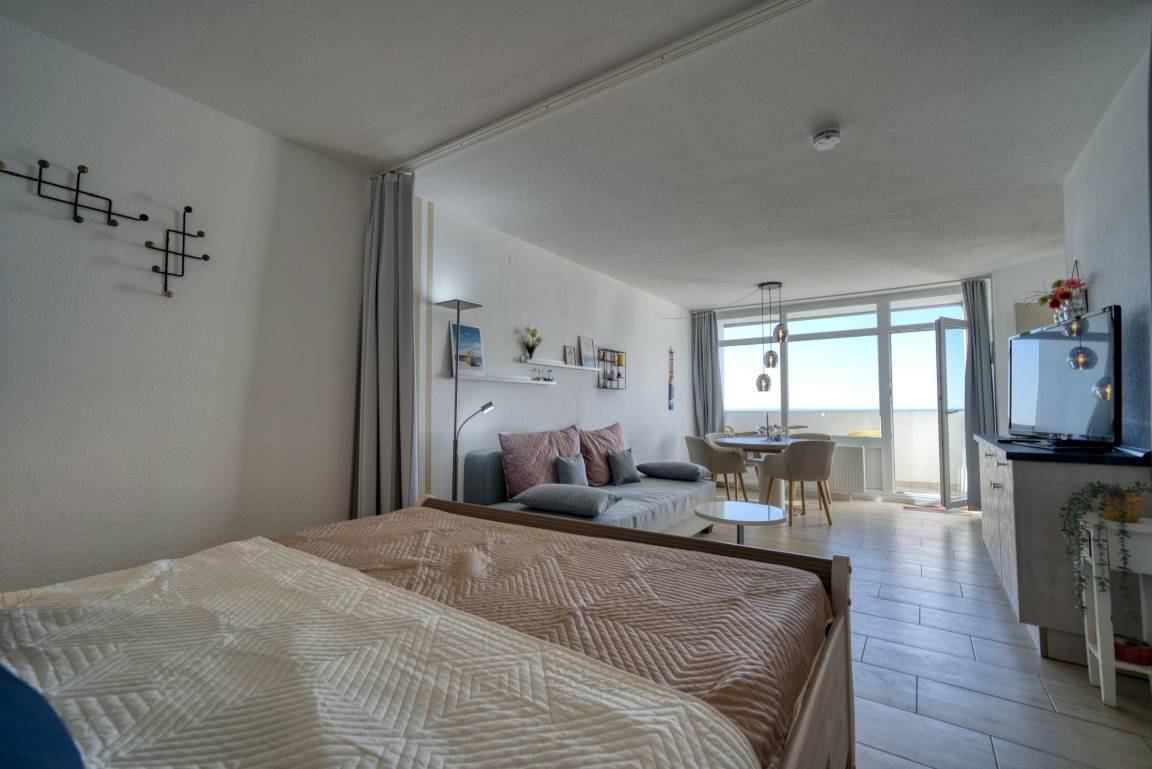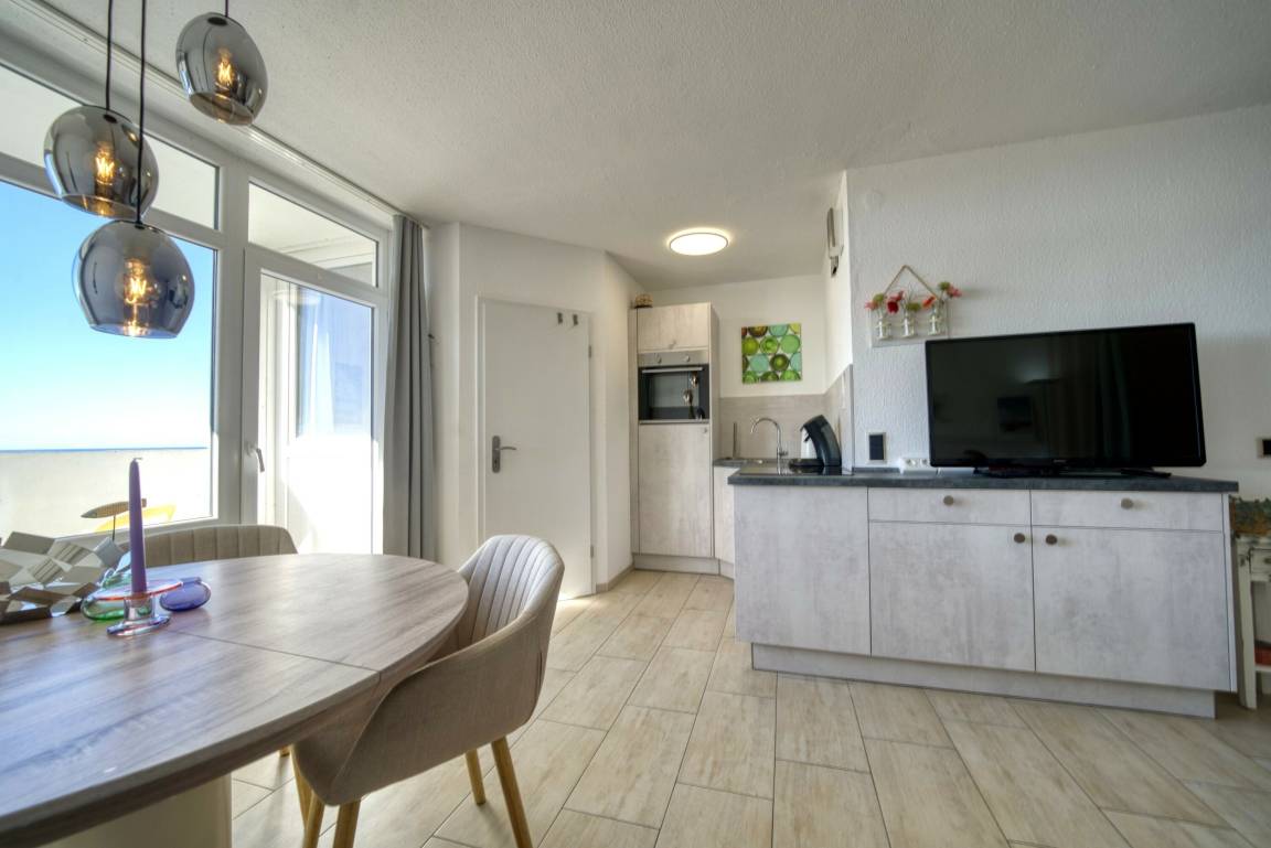 Genießen Sie Ihren unbeschwerten Urlaub in dieser komfortablen Ferienwohnung im Haus F des Ferienparks Heiligenhafen, die sich in der 14. Etage befindet. Der Balkon zur Westseite bietet einen herrlichen Blick auf die Ostsee und die umliegende Natur, perfekt für entspannte Momente bei Sonnenuntergang.