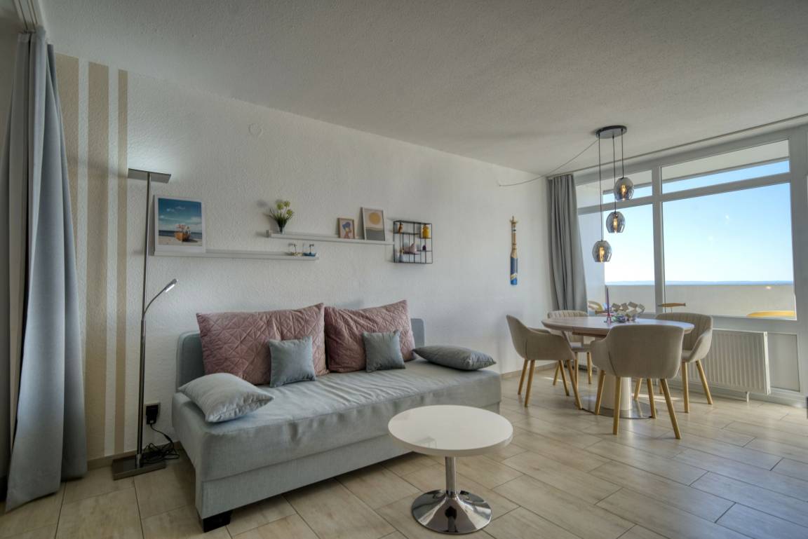 Die 45 m² große Wohnung bietet Wohn-/Essbereich mit Schlafsofa, Schlafbereich mit Doppelbett, Kinderzimmer mit Etagenbett und TV sowie Balkon mit Ostseeblick. Voll ausgestattete Küche (4-Plattenherd, Backofen, Kühlschrank ohne Gefrierfach, Geschirrspüler), Bad mit WC und Dusche. Bonus: kostenloses WLAN. Nichtraucher, keine Haustiere, Fahrstuhl, Fahrradräume, ca. 300 m zum Strand, Parkplatz vorhanden. Ideal für Familien bis 5 Personen.