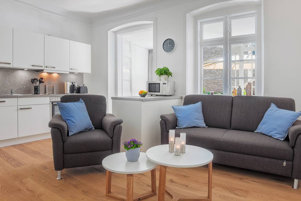 Diese charmante Ferienwohnung befindet sich im Gutshaus des „Fischerdorf Heiligenhafen", direkt im Zentrum von Heiligenhafen. Die stilvolle Wohnanlage mitten in der historischen Altstadt vereint hochwertigen Wohnkomfort mit einer unschlagbaren Lage.