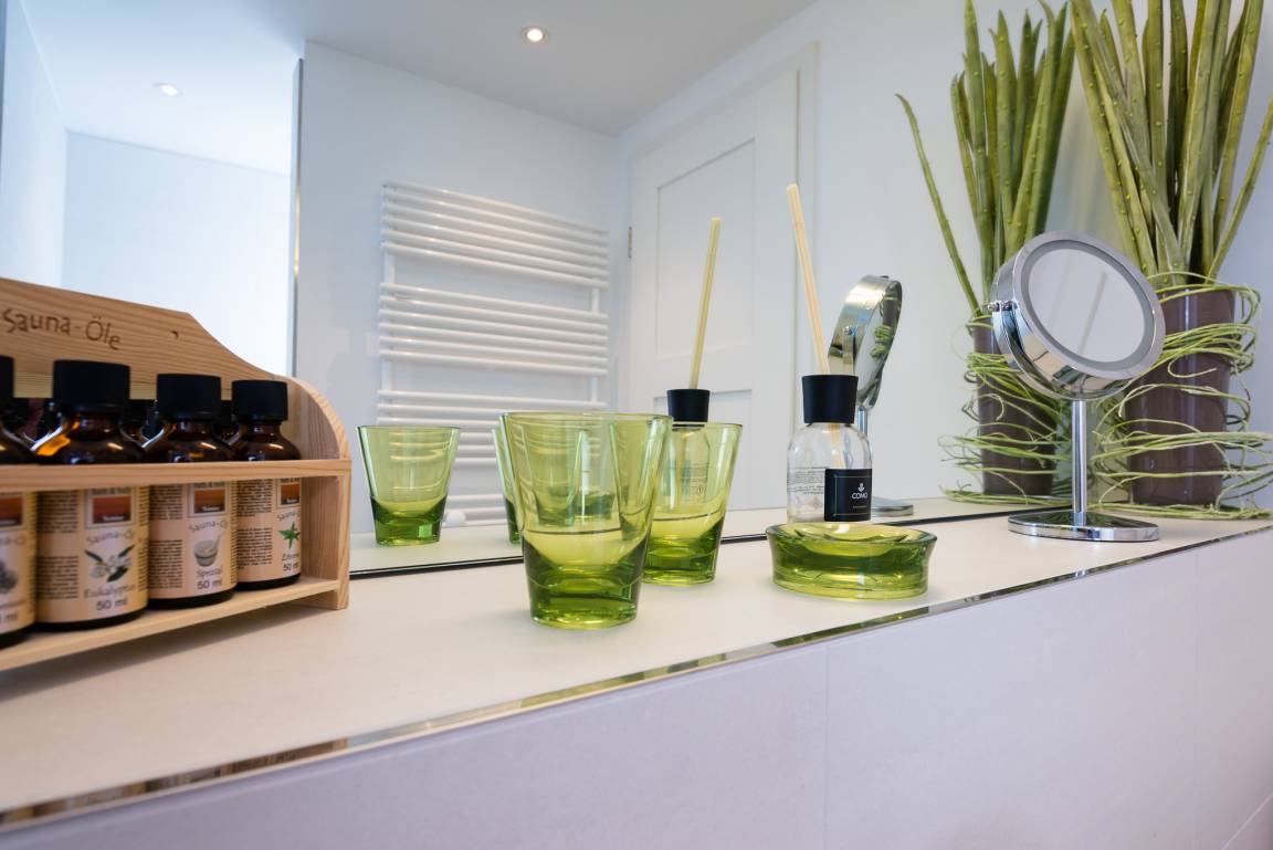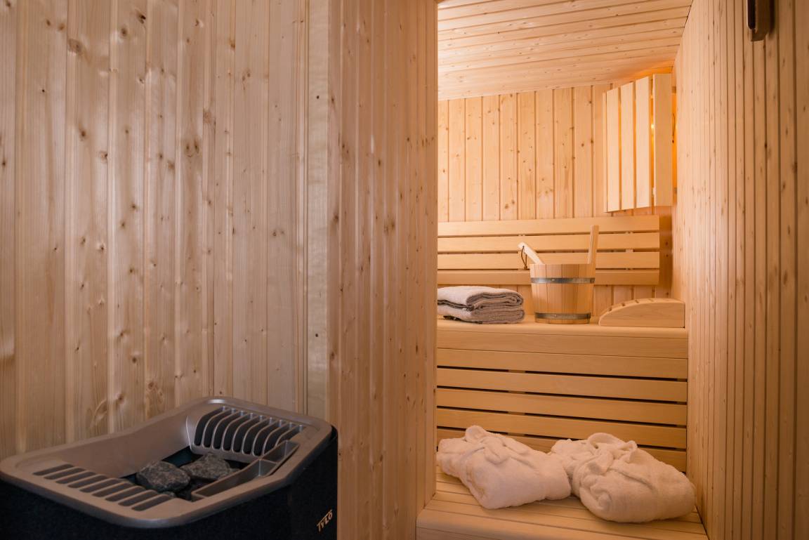 Der Sauna lädt für die extra Portion Entspannung und Wellness ein. Genießen Sie hier die wohlige Wärme und probieren Sie gerne die verschiedenen Saunaöle aus. Ein paar ausgiebige Gänge in der kuschelige Sauna und Sie sind wieder total entspannt.