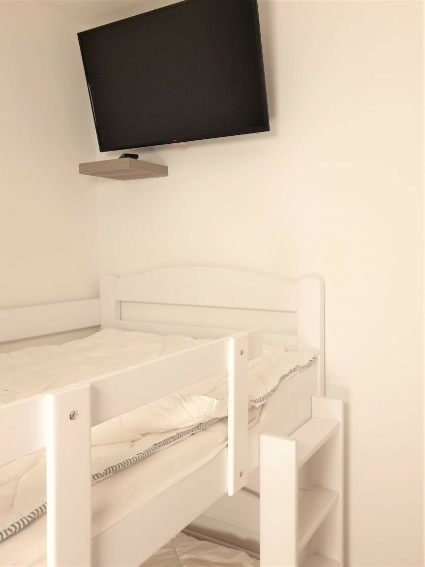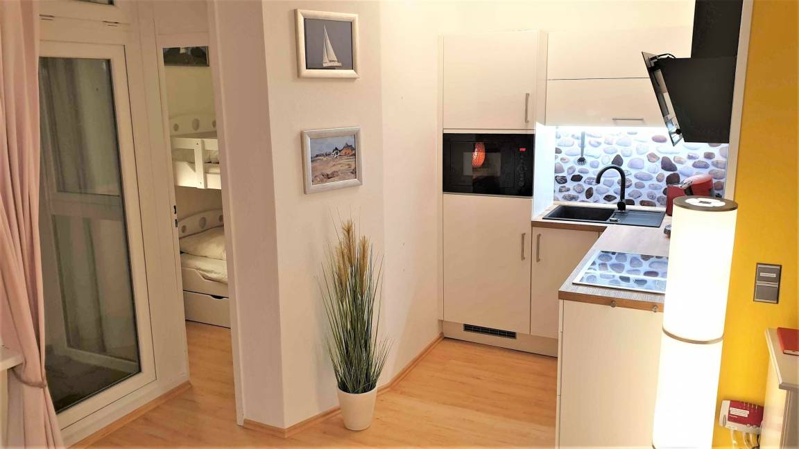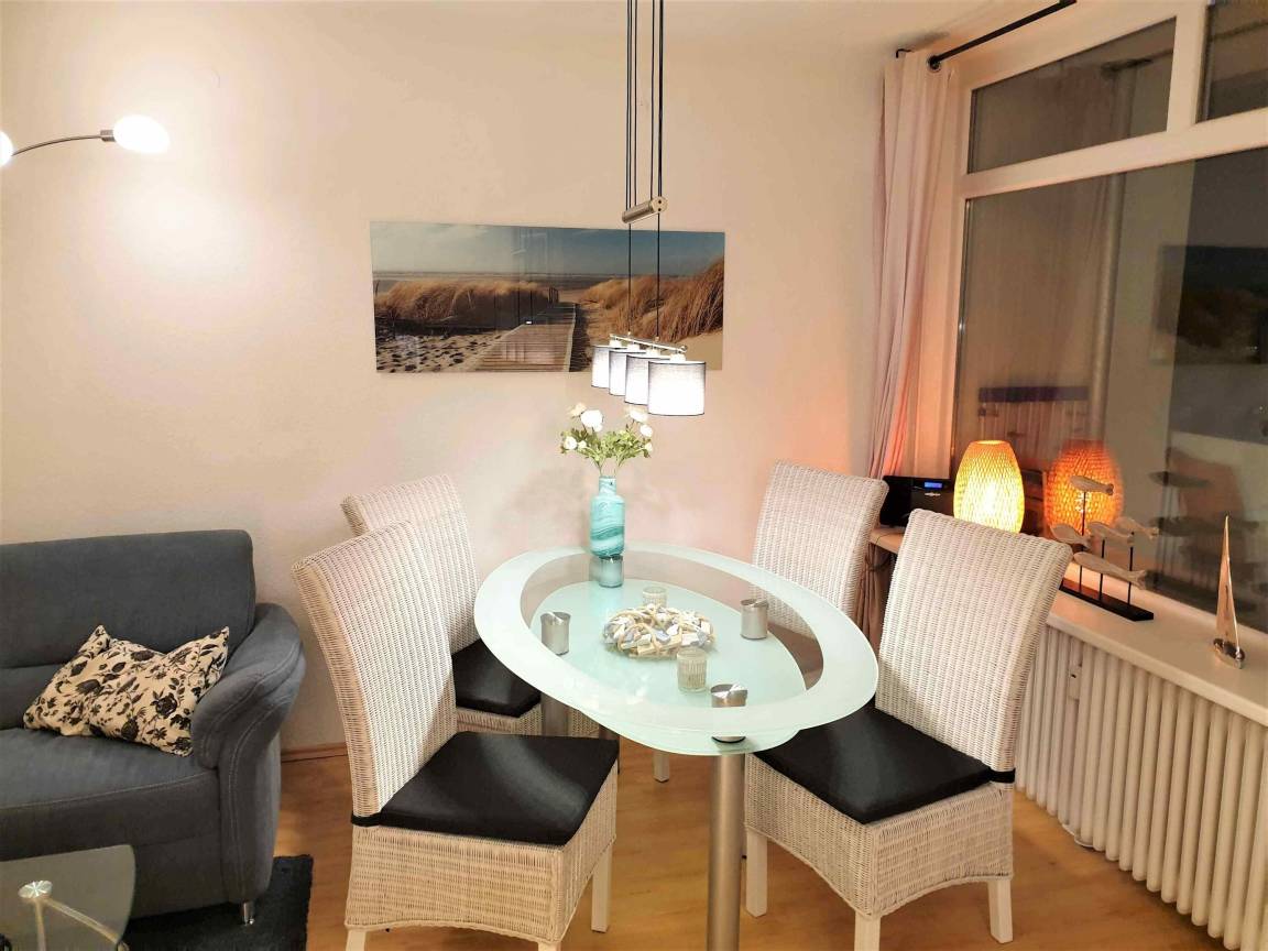 Wohnfläche 45 m²: Wohn-Esszimmer mit Flat-TV, zwei Schlafzimmer mit TV, Kinderzimmer mit Etagenbett (2 Erwachsene geeignet), Küche mit Spülmaschine, Backofen/Mikrowelle, Toaster, Wasserkocher, Pad- und Kaffeemaschine. Modernes Bad mit Dusche/WC, Balkon mit Möbeln. WLAN, Netflix, PC-LAN, USB-Ladestation, Kinderhochstuhl und Kofferrolli vorhanden. Nichtraucher, haustierfrei, max. 4 Personen, Fahrstuhl, kostenfreier Parkplatz. Bettwäsche/Handtücher im Büro abzuholen. Ideale Lage, Strand ca. 300 m, Aktiv-Hus und Läden in der Nähe.