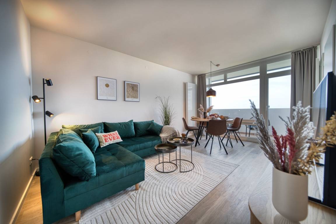Verbringen Sie einen unvergesslichen Urlaub in dieser modern renovierten und komfortabel eingerichteten Ferienwohnung im Ferienpark Heiligenhafen im 6. Stock des Hauses I. Ideal für Familien oder Paare bietet die Wohnung Platz für bis zu 4 Personen und beeindruckt mit einem wunderschönen Panoramablick auf die Ostsee.