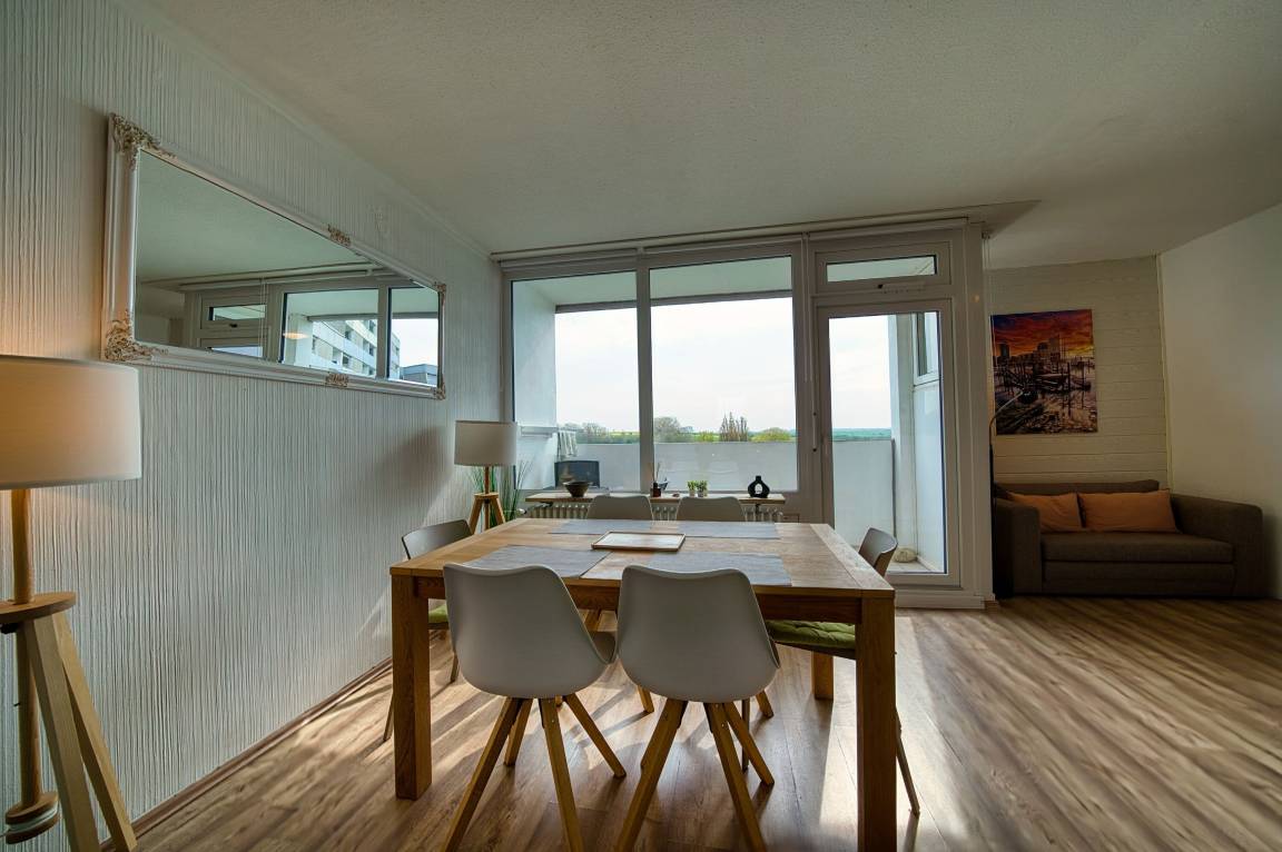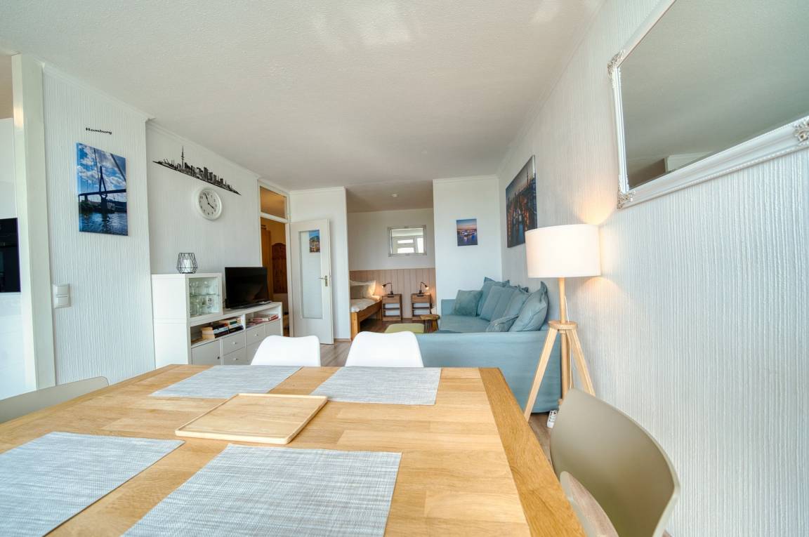 Diese charmante Ferienwohnung in der 5. Etage des Hauses P im Ferienpark Heiligenhafen bietet auf 45 m² eine angenehme Rückzugsmöglichkeit für bis zu 4 Personen. Mit dem sonnigen Südbalkon mit Blick ins Grüne und der durchdachten Ausstattung ist sie ideal für Erholungssuchende, Paare oder kleine Familien.