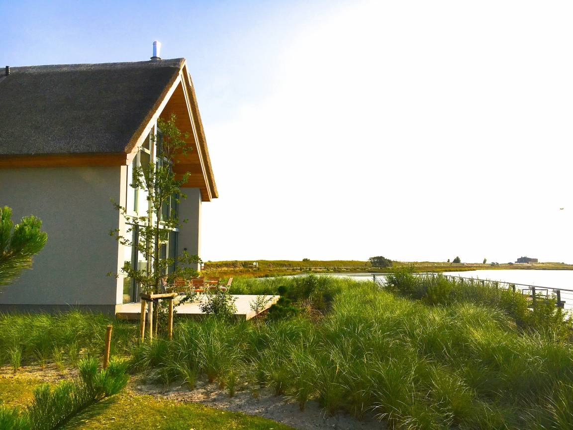 Haus 46 liegt in traumhafter Lage am äußeren Rand der Ferienanlage direkt am Yachthafen mit Blick auf die Ostsee, den Binnensee, der Fehmarnsundbrücke und das Naturschutzgebiet.
