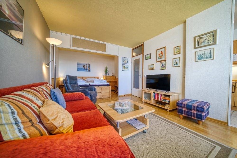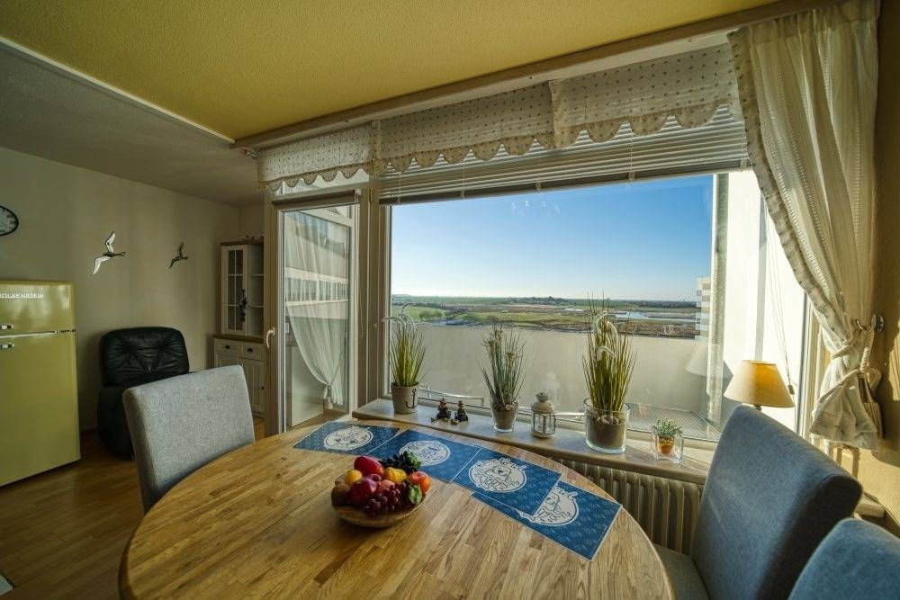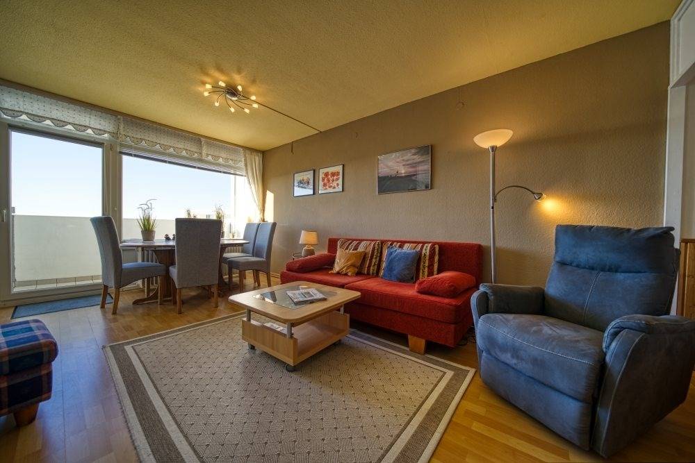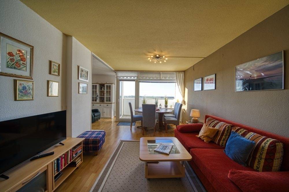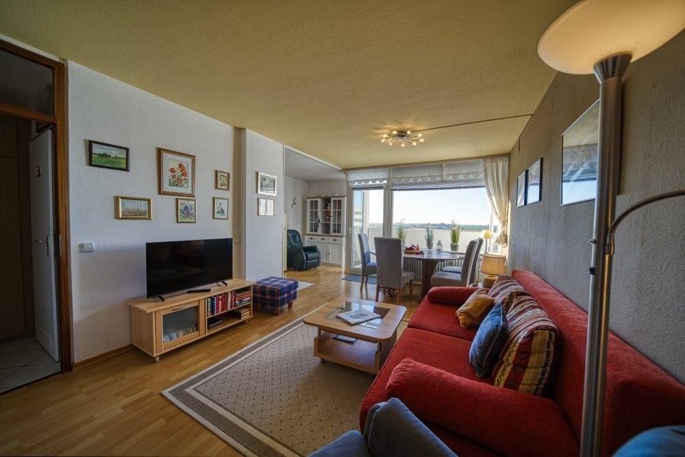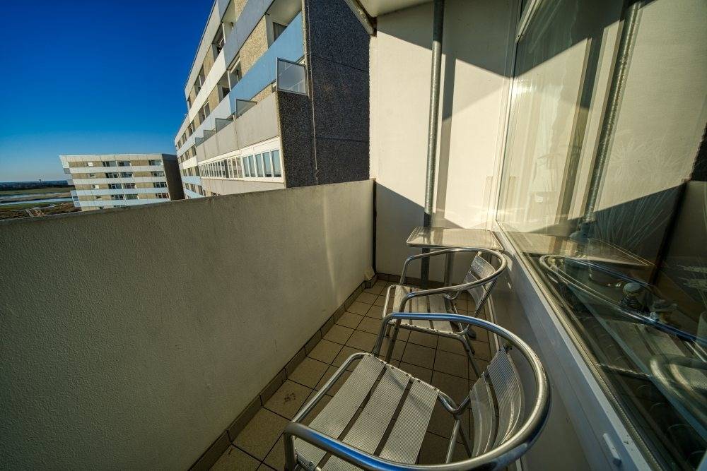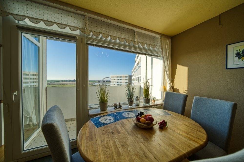 Helle Ferienwohnung in der 7. Etage des Hauses M mit Balkon zur Westseite und Blick auf die Salzwiesen Richtung Hohwachter Bucht. Wohn-Esszimmer, Elternschlafraum mit Einzelbetten, offene Küche mit 4-Platten-Herd, Kühlschrank mit Gefrierfach und Bad mit Dusche/WC. Flachbild-TV und Radio. Nichtraucherwohnung, keine Haustiere, max. 2 Personen. Fahrstuhl vorhanden, kostenloser Parkplatz. Strand ca. 300 m. Nähe Aktiv-Hus mit Schwimmbad, Sauna, Wellness und Kinderspielwelt für abwechslungsreiche Freizeitgestaltung.