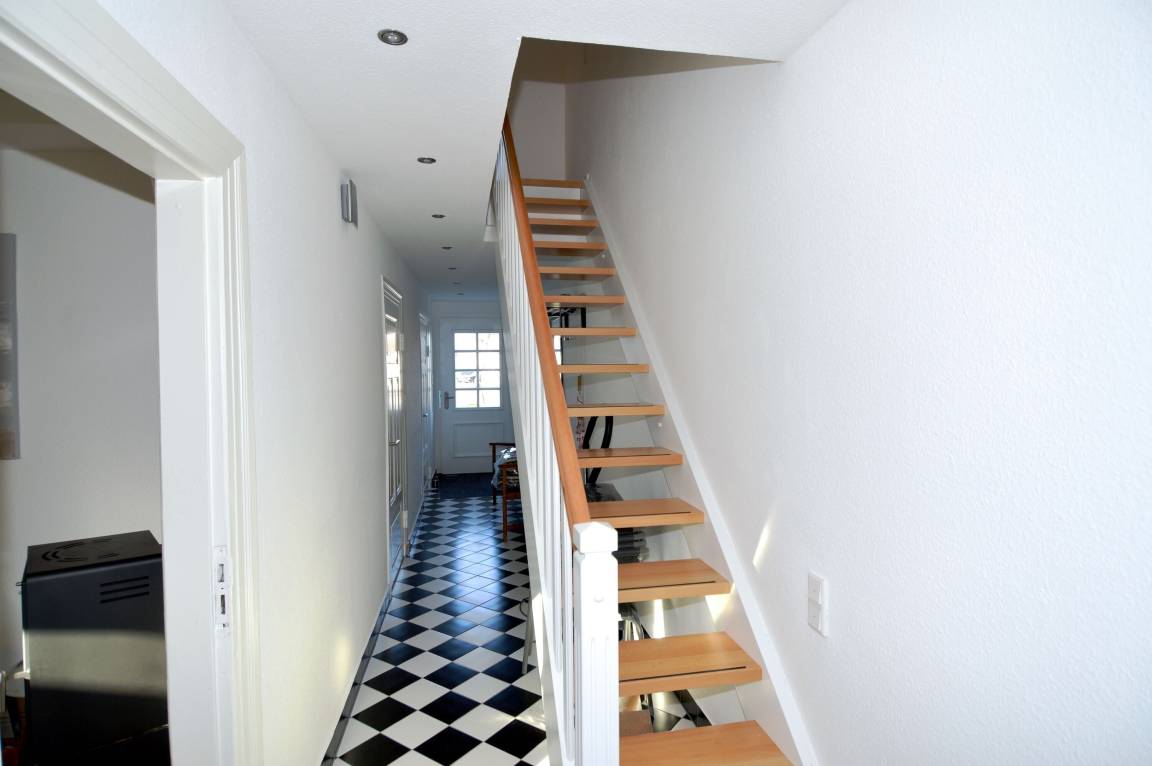 Das Haus erstreckt sich über drei Etagen: Im Erdgeschoss finden Sie einen gemütlichen Eingangsbereich sowie ein praktisches Gäste-WC. Die voll ausgestattete Küche lässt keine Wünsche offen – hier können Sie nach Herzenslust kochen und Ihre kulinarischen Fähigkeiten unter Beweis stellen. Der angrenzende Essbereich lädt zum gemeinsamen Schlemmen ein.