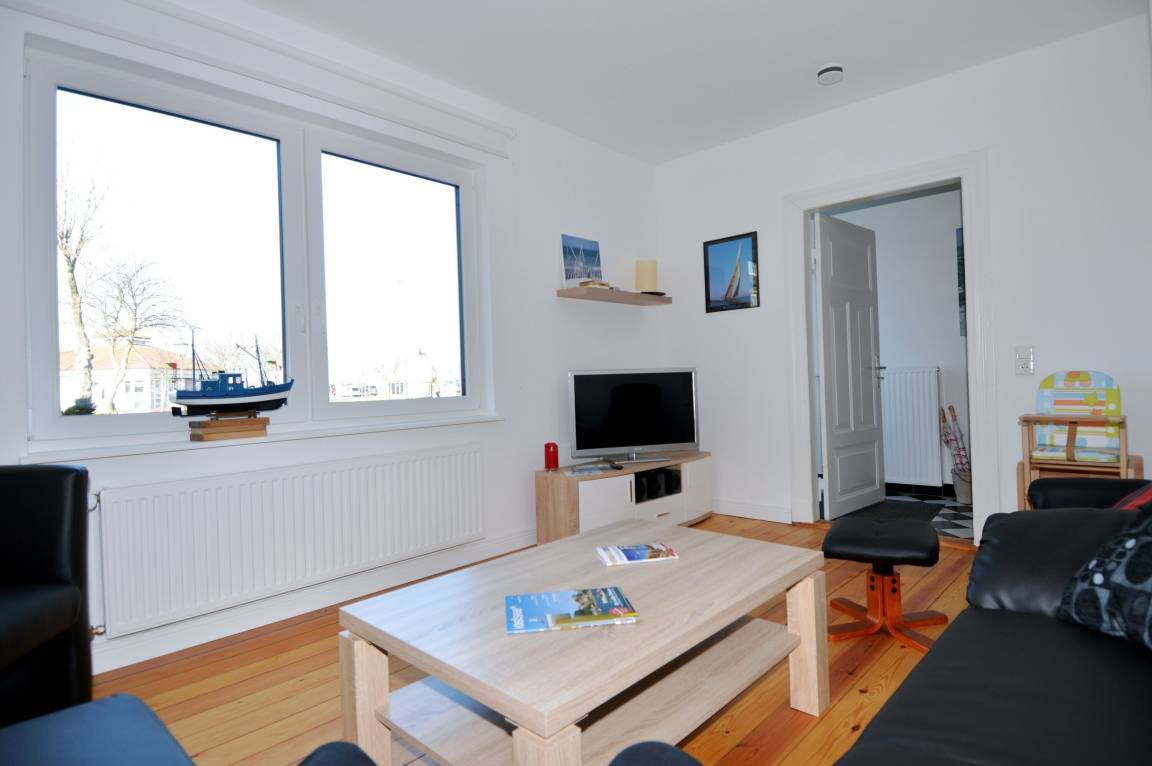 Das großzügige Wohnzimmer mit Kaminofen (bitte beachten Sie, dass Holz nicht zur Verfügung steht) ist der perfekte Ort für gesellige Abende. Genießen Sie entspannte Stunden vor dem Fernseher oder lassen Sie sich von der behaglichen Atmosphäre des Kamins verzaubern.