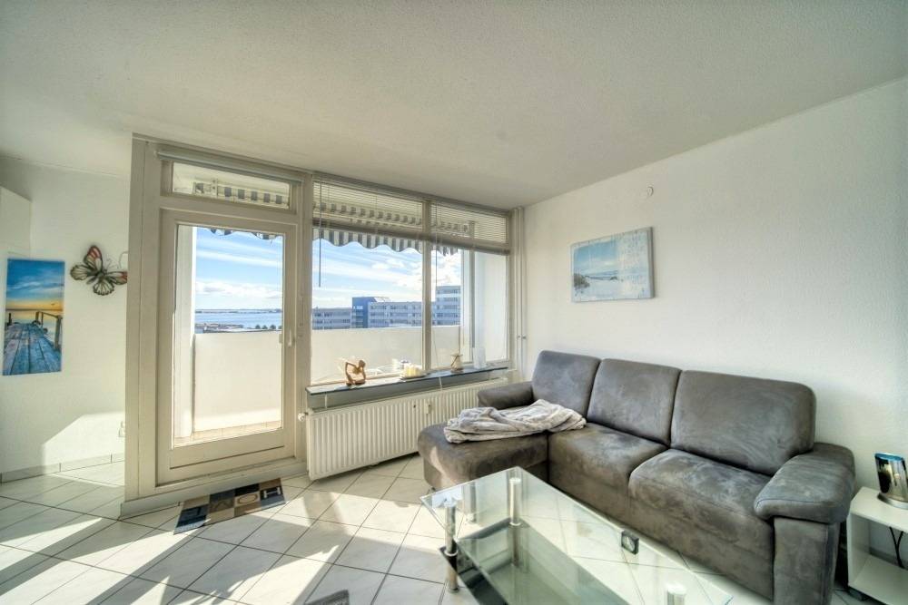 Die Wohnung liegt im Haus G Ferienpark, in der 7. Etage, mit Balkon zur Ostseite, der einen herrlichen Blick auf die Ostsee in Richtung der Fehmarnsundbrücke sowie auf den Binnensee mit Stadt und Yachthafen bietet.