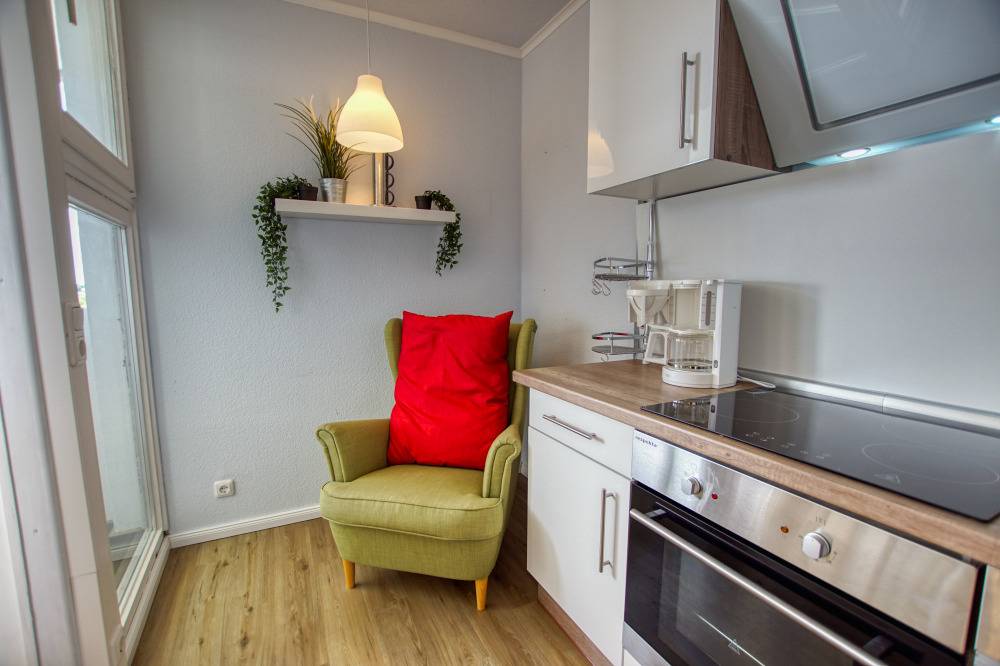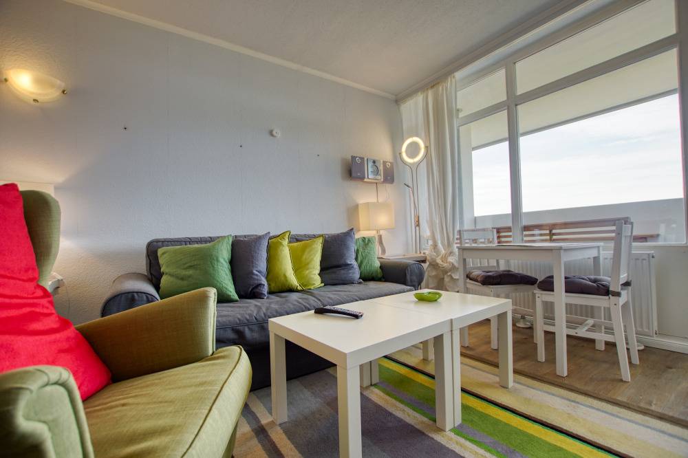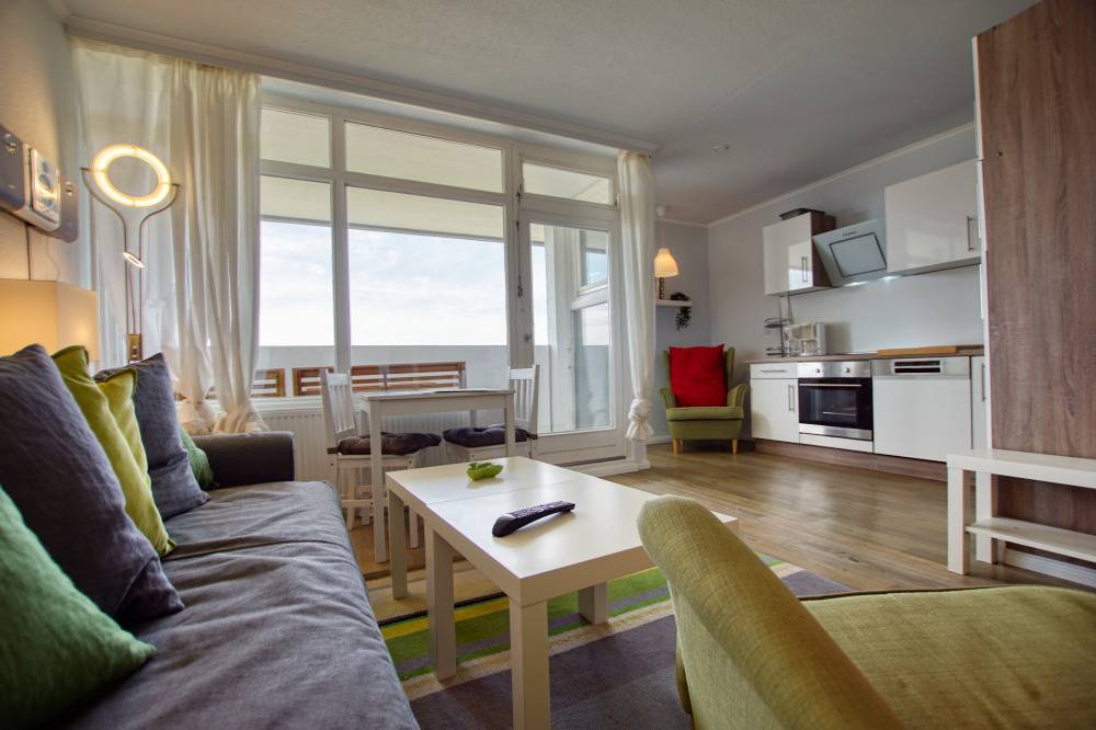 Die 45 m² Wohnung bietet offenen Wohnraum mit Flachbild-TV, separaten Elternschlafraum mit Doppelbett, komplett ausgestattete Küche (Mikrowelle, Kühlschrank mit Gefrierfach, 4‑Plattenherd, Backofen, Geschirrspüler) und vergrößertes Bad mit WC und Duschkabine. Nichtraucher, keine Haustiere, Fahrstuhl, Fahrradräume vorhanden, Strand ca. 300 m, Parkplatz hinter dem Ferienpark. Ideal für erholsame Urlaubstage mit vielfältigen Freizeitmöglichkeiten im Ferienpark.