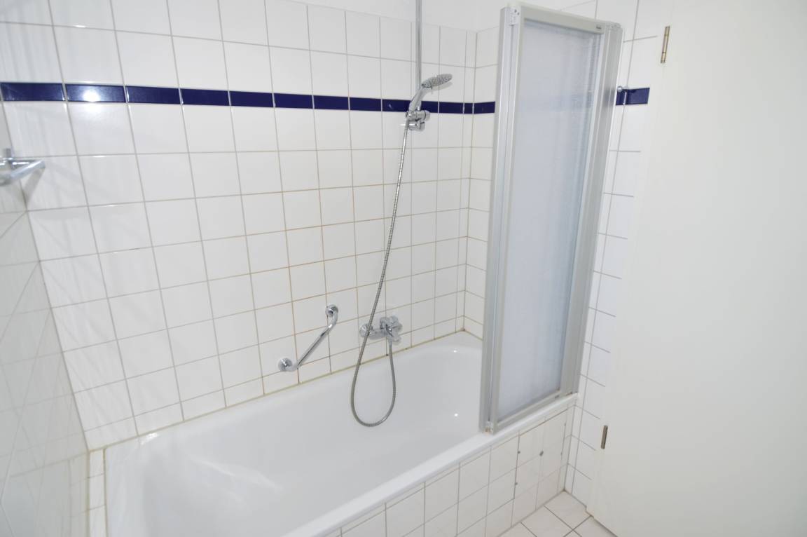 Das Badezimmer ist gepflegt und funktional gestaltet und verfügt über eine Badewanne sowie ein Waschbecken – ideal, um nach einem Strand- oder Ausflugstag zu entspannen.