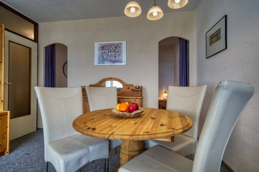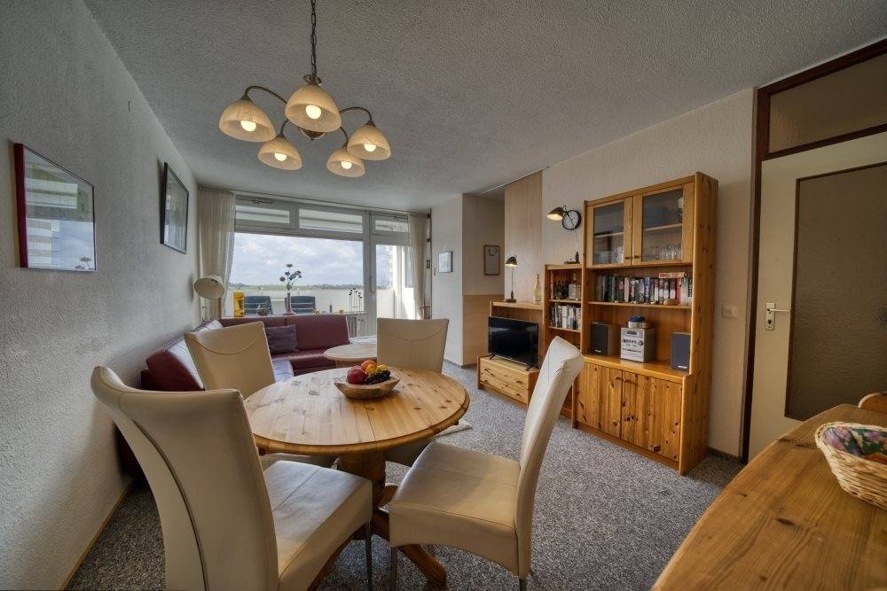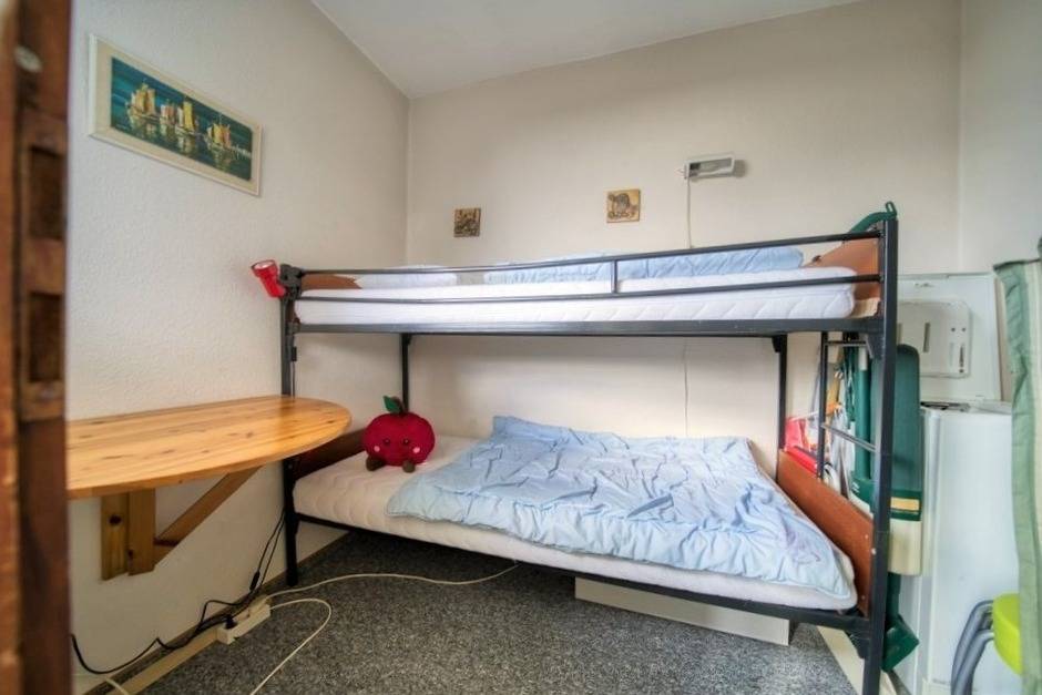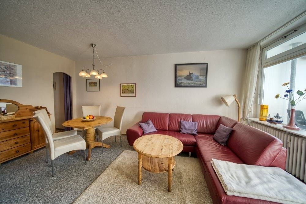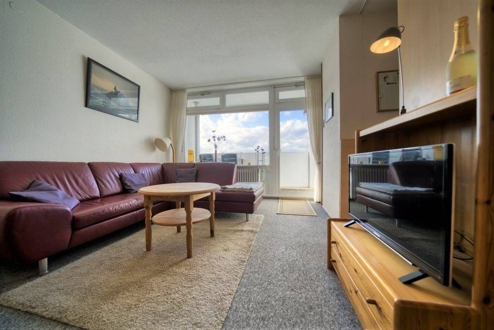 Helle Ferienwohnung in Haus M, 4. Etage, mit Balkon zur Südwestseite und Blick auf die Ostsee. Wohn-Esszimmer, Elternschlafbereich mit Doppelbett, Kinderzimmer mit Etagenbett und Verdunklung. Küche mit 4-Plattenherd, Mikrowelle und Kühlschrank. Bad mit Dusche und WC. TV und Radio im Wohnzimmer, Balkon mit Jalousie. Max. 3 Personen, Nichtraucher, keine Haustiere, kein WLAN. Fahrstuhl vorhanden, kostenfreier Parkplatz, Strand ca. 300 m. Hinweis: Wohnung nicht zeitgemäß eingerichtet. Ferienpark mit Aktiv-Hus, Schwimmbad, Sauna, Wellness und vielfältigen Freizeitmöglichkeiten.