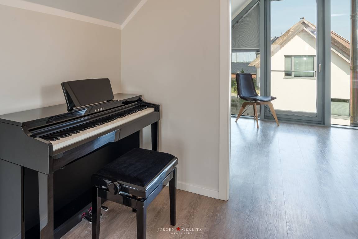 Im Obergeschoss befindet sich ein digitales Klavier (Digitalpiano Yamaha CLP 525)