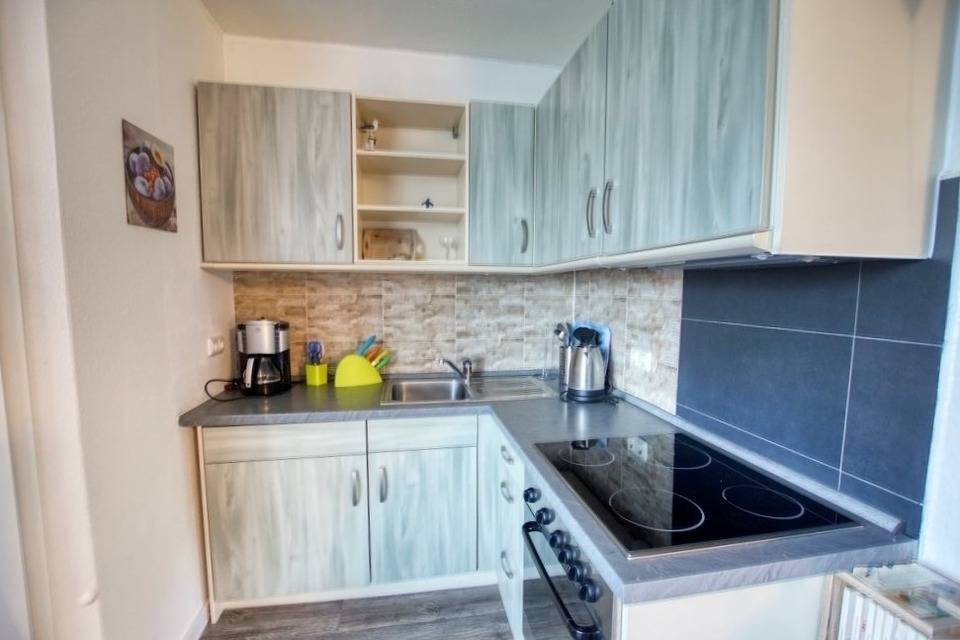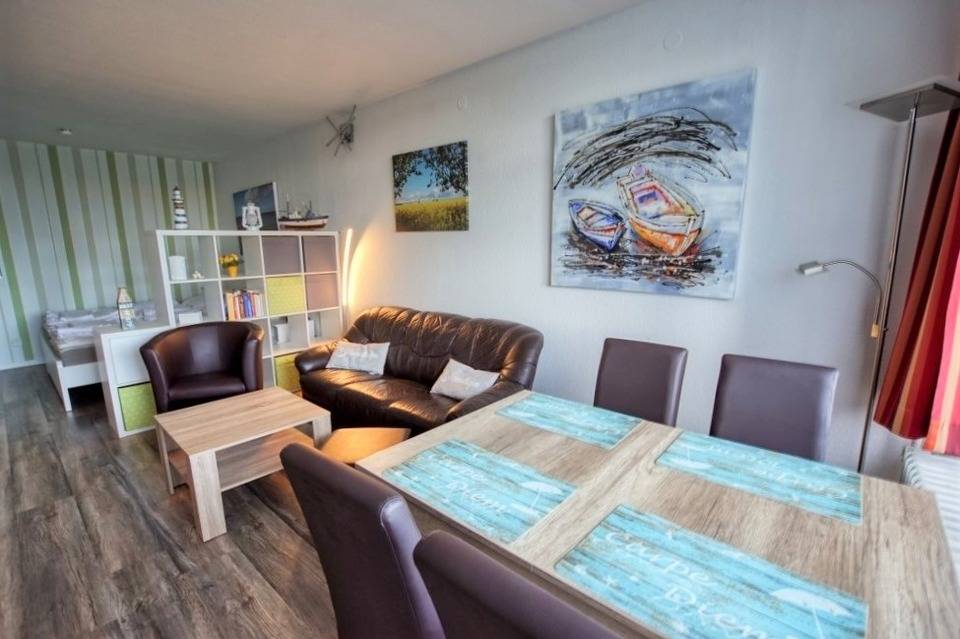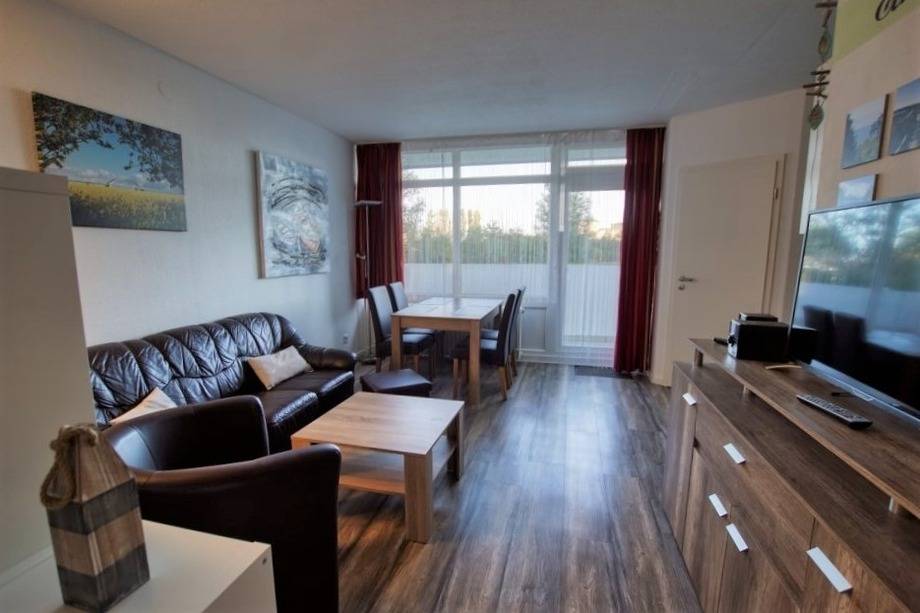 Die Ferienwohnung im Haus D im Erdgeschoss mit Süd-West-Balkon und 45 m² Wohnfläche wurde 2022 hochwertig saniert und bietet Platz für bis zu 4 Personen.
