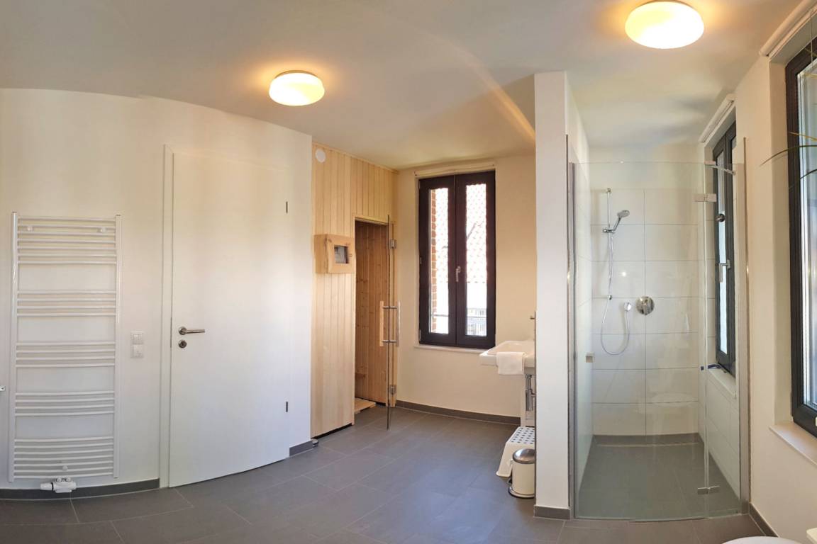 Die zwei Badezimmer in den oberen Etagen sind modern ausgestattet. Nach einem erlebnisreichen Tag können Sie im großzügigen Hauptbad mit Sauna (gegen Gebühr), Badewanne oder ebenerdiger Dusche entspannen. Das zweite Badezimmer im Dachgeschoss verfügt über eine Dusche und bietet somit zusätzlichen Raum für die tägliche Pflege. Handtuchwärmer und WC sind in beiden Bädern vorhanden. Im Erdgeschoss sorgt ein zusätzliches Gäste-WC für weiteren Komfort. Das gesamte Haus wird beim Warmwasser über Durchlauferhitzer versorgt.