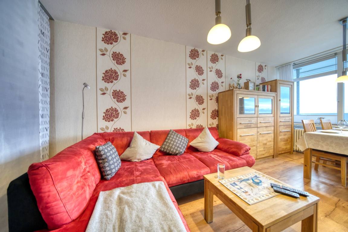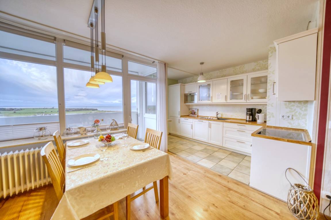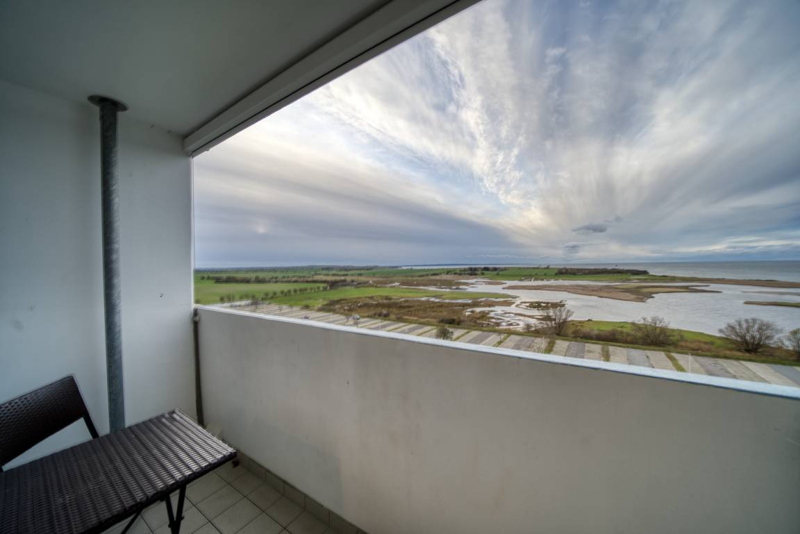 Die Ferienwohnung im Haus E, 11. Etage, mit Balkon zur Westseite, bietet einen herrlichen Ostseeblick und Sonne vom Nachmittag bis in die Abendstunden. Genießen Sie das farbenfrohe Lichterspiel des Sonnenuntergangs an der Ostsee.