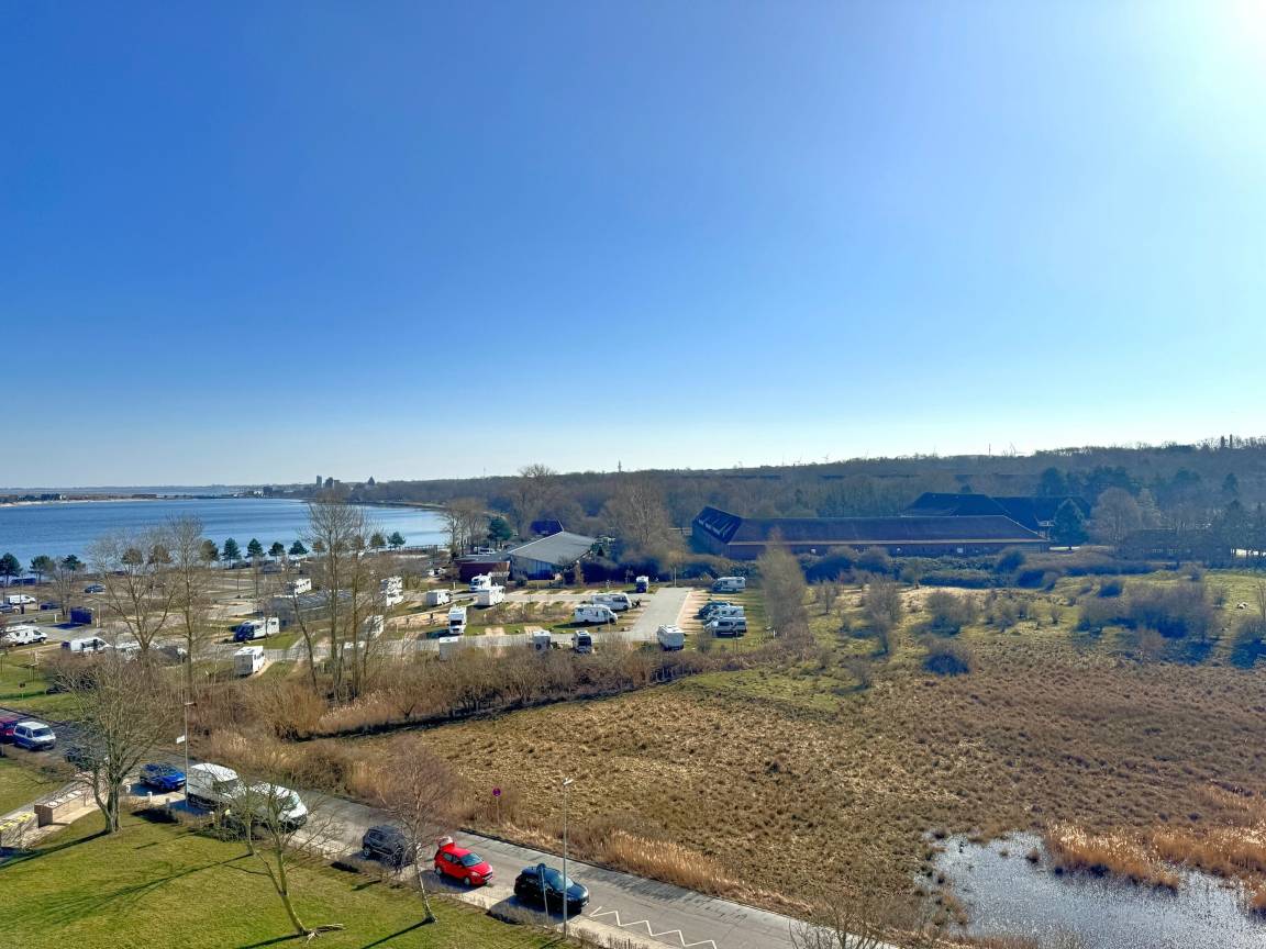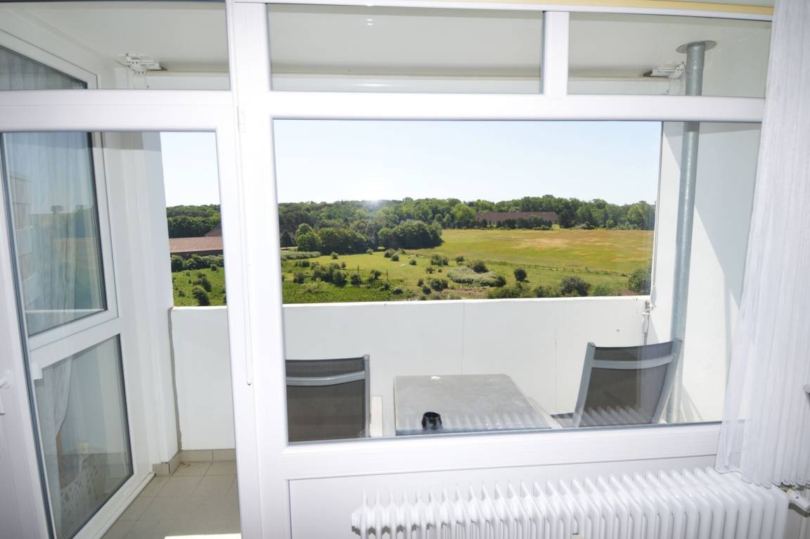 Dieses süße Appartement für zwei Personen erwartet Sie im Ostsee-Ferienpark im Haus N, hoch in der 8. Etage. Lassen Sie Ihren Blick über die grünen Felder schweifen und genießen Sie den seitlichen Blick auf den Binnensee – ein Ort der Ruhe und Entspannung.