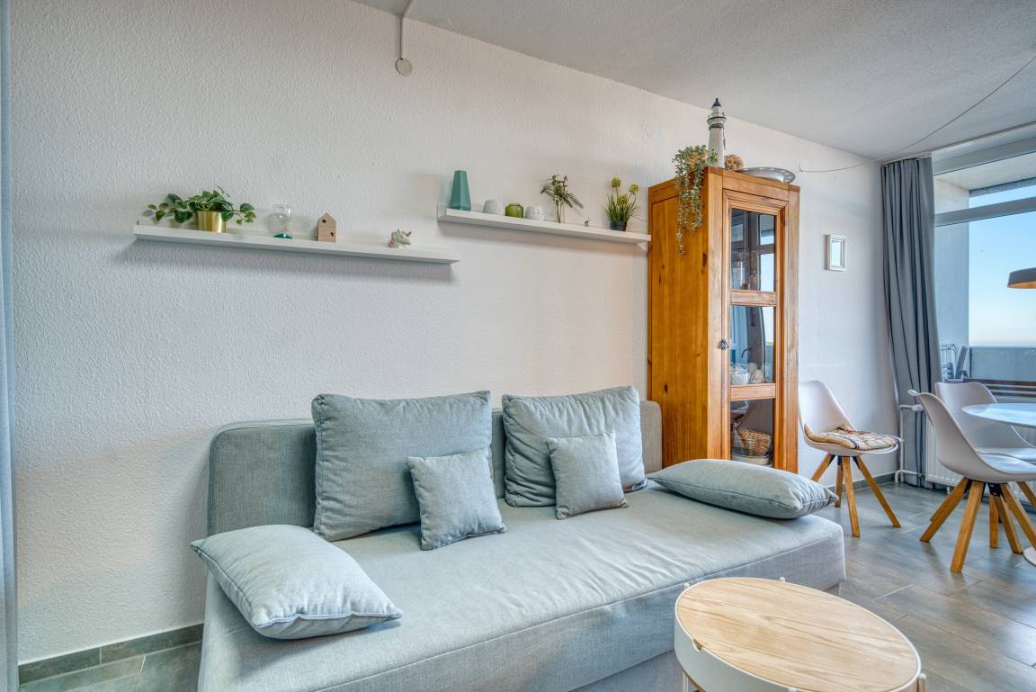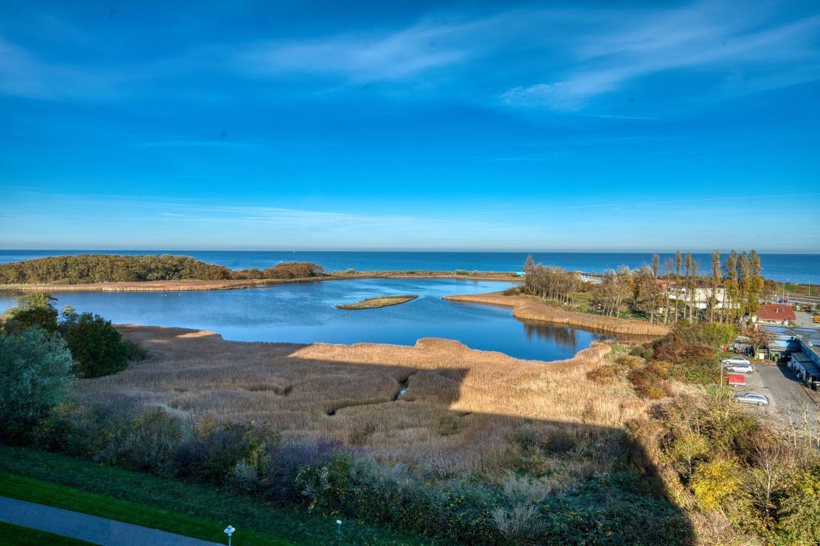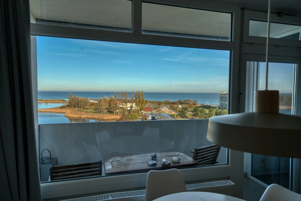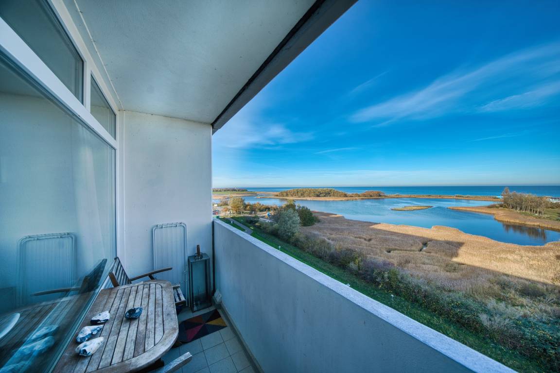 Diese gepflegte Ferienwohnung in der 7. Etage im Haus A des Ferienparks Heiligenhafen bietet auf 45 m² Platz für bis zu 4 Personen. Der Balkon mit direktem Ostseeblick lädt zu entspannten Stunden ein.