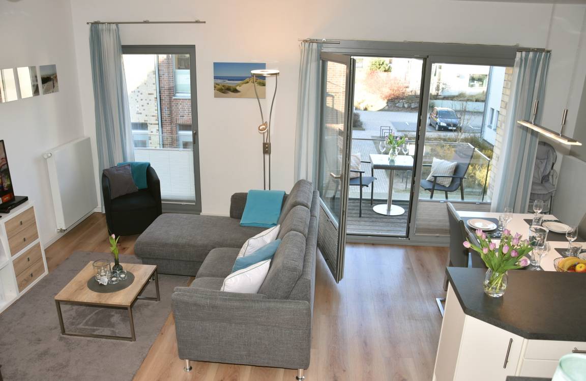 The stylishly furnished holiday apartment comprises of a bedroom with a double bed (box spring bed), a smaller bedroom with a bunk bed as well as a spacious living-dining room. The kitchen is fully equipped and also has a dishwasher and microwave. In the living room and bedroom there is a Smart TV each. The high-quality facilities also include a CD and DVD player, a fireplace as well as free Wi-Fi.